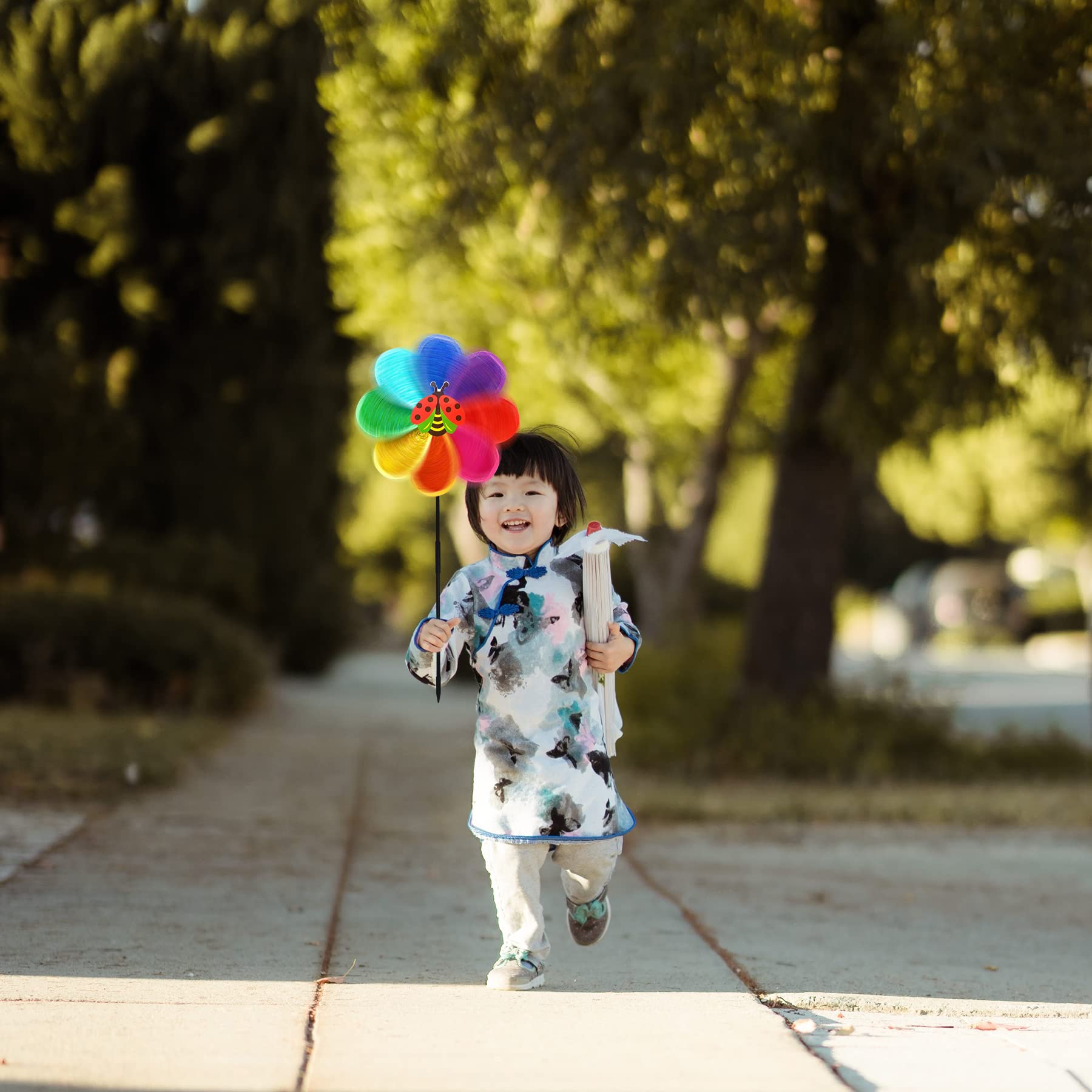 You will receive 3 colorful windmills that look very beautiful and shine under the light, making them beautiful and moving! Bring more vibrant colors to your garden, courtyard, and party gatherings! pinwheels to keep birds away.