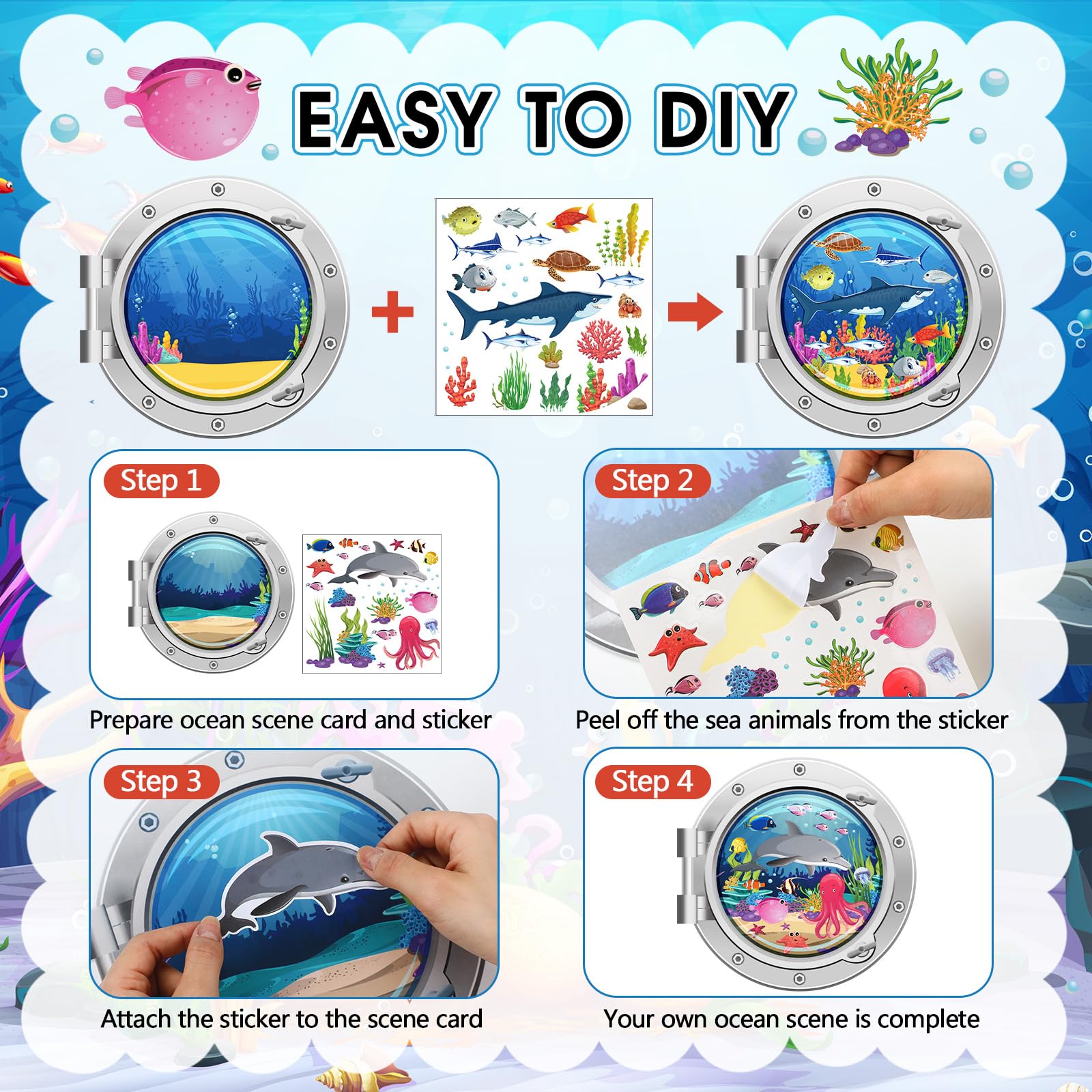 Frienda 48 Set Summer Craft Kit Cruises Under The Sea Sticker Crafts Bulk DIY Ocean Sea Animals Scene Stickers Shark Clown Fish