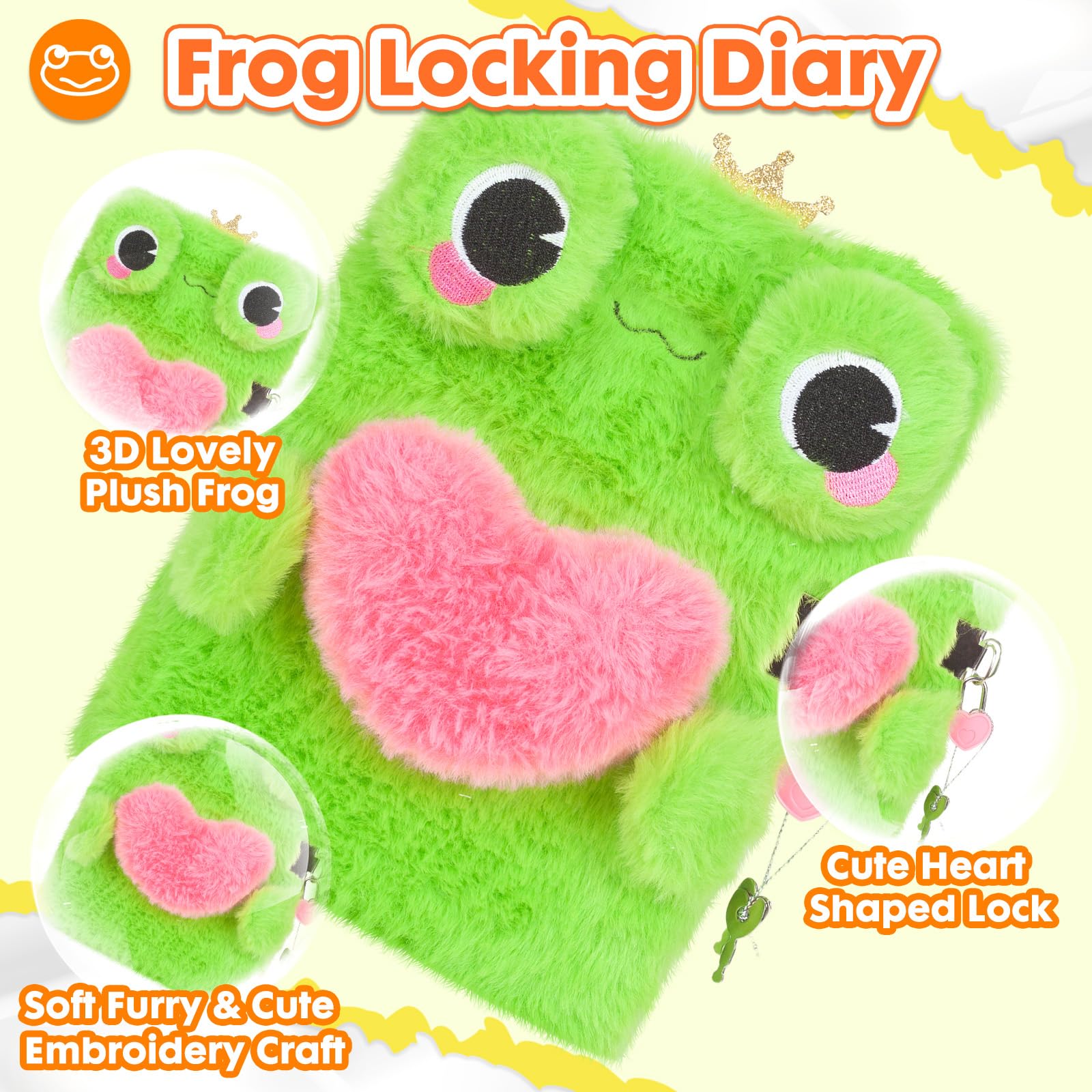 Frog Diary for Girls with Lock Plush FrogToys Gift for Teen Girls Kids Writing Journal Notebook Birthday Gifts for Little Girls Ages 5 6 7 8 9 10-12 Year Old