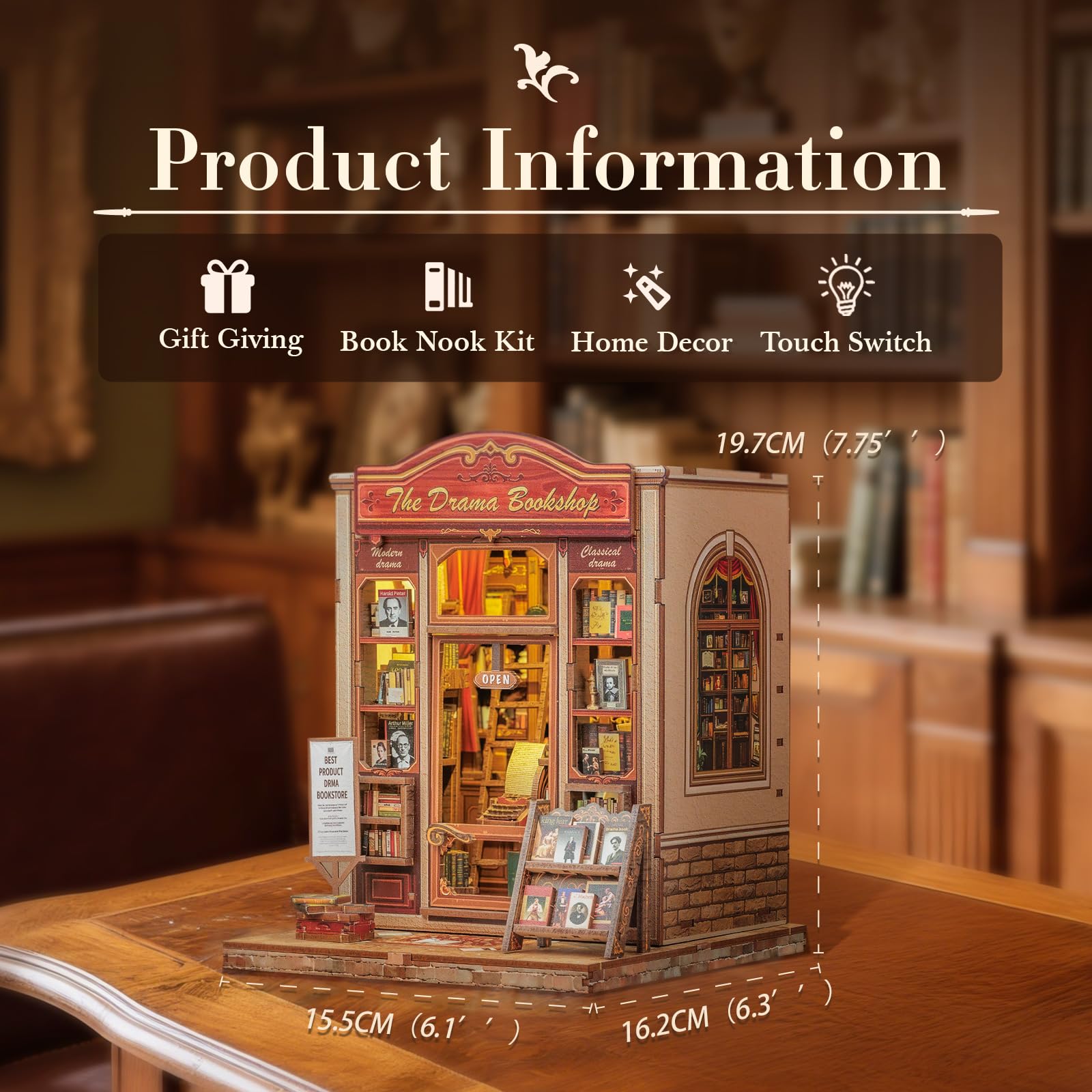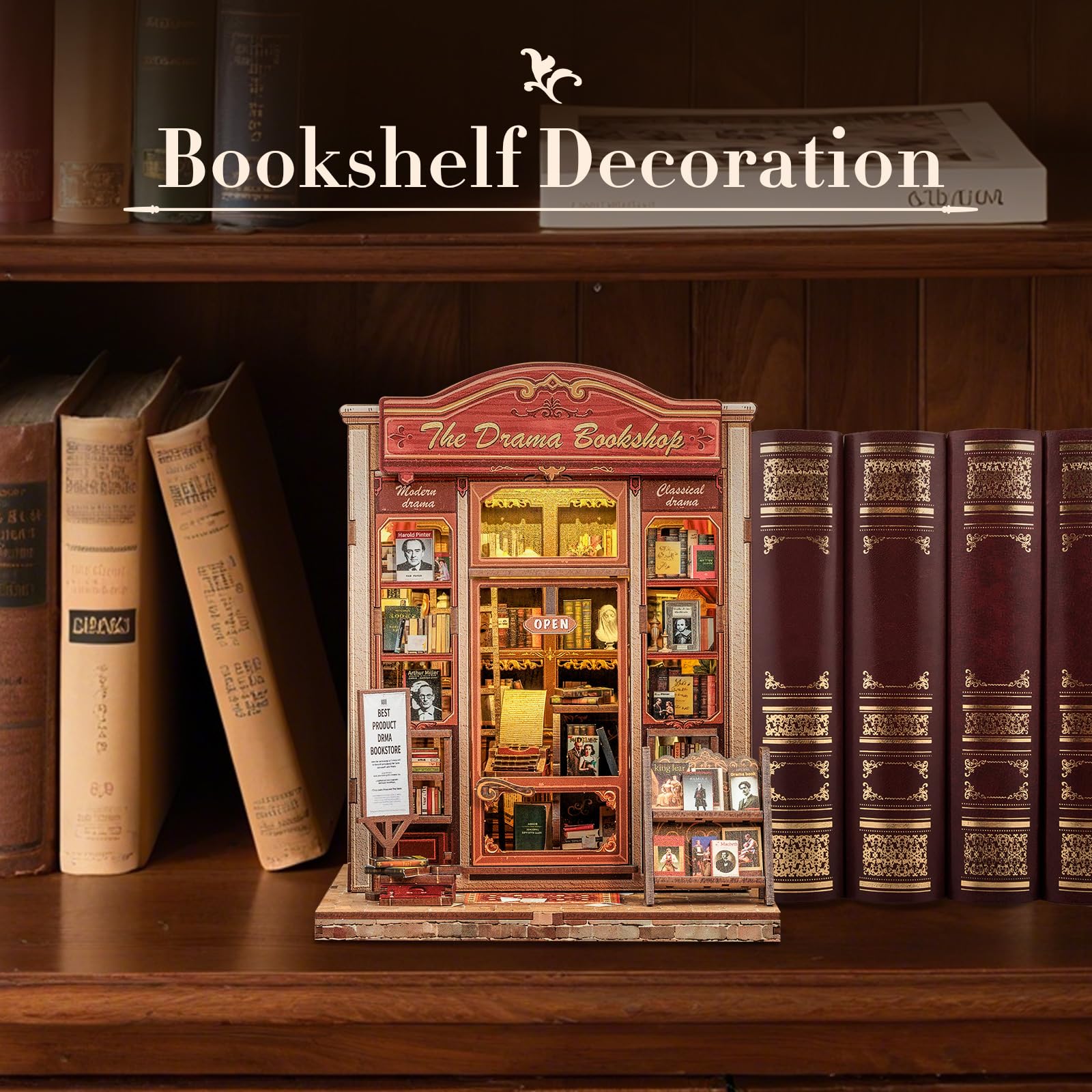 Fsolis Book Nook Kit DIY Miniature Scene Kit for mature-themeds and Beginners 3D Wood Puzzles Tiny House Room Kit Mini Craft Bookshelf Decor Gifts for Women Teenagers Book Lovers (The Drama Bookshop)