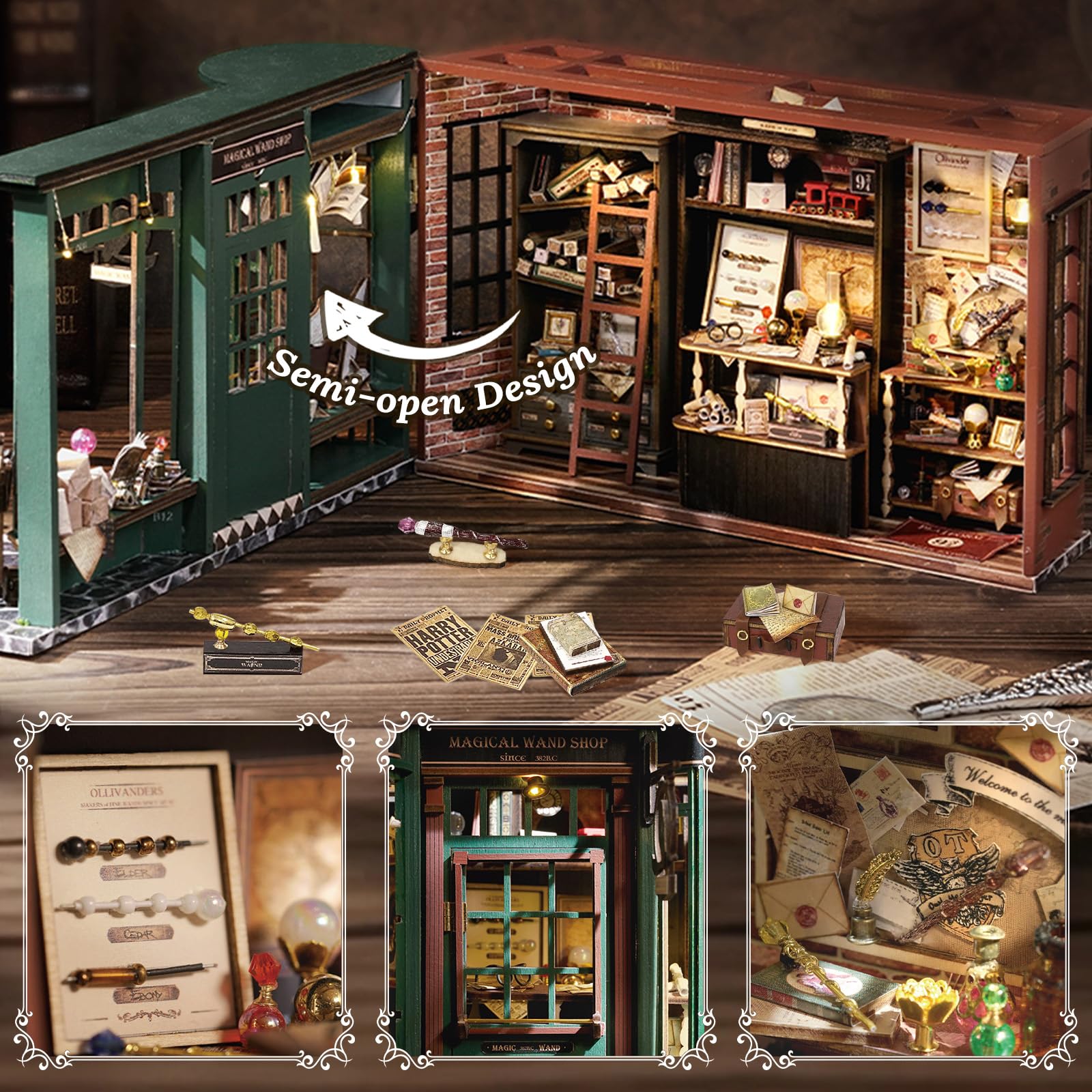 Fsolis DIY Miniature Dollhouse Kit for mature-themeds - Tiny House Mini Bookshelf Scene Kit 3D Wooden Puzzles Gifts for Women Teenagers Craft Lovers (Magic Wand)