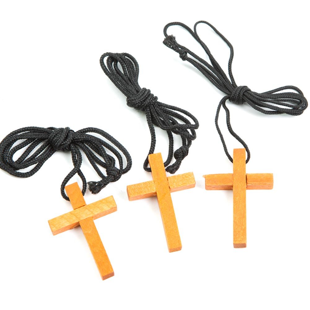 Fun Express Wooden Cross Necklaces (12 Pack)