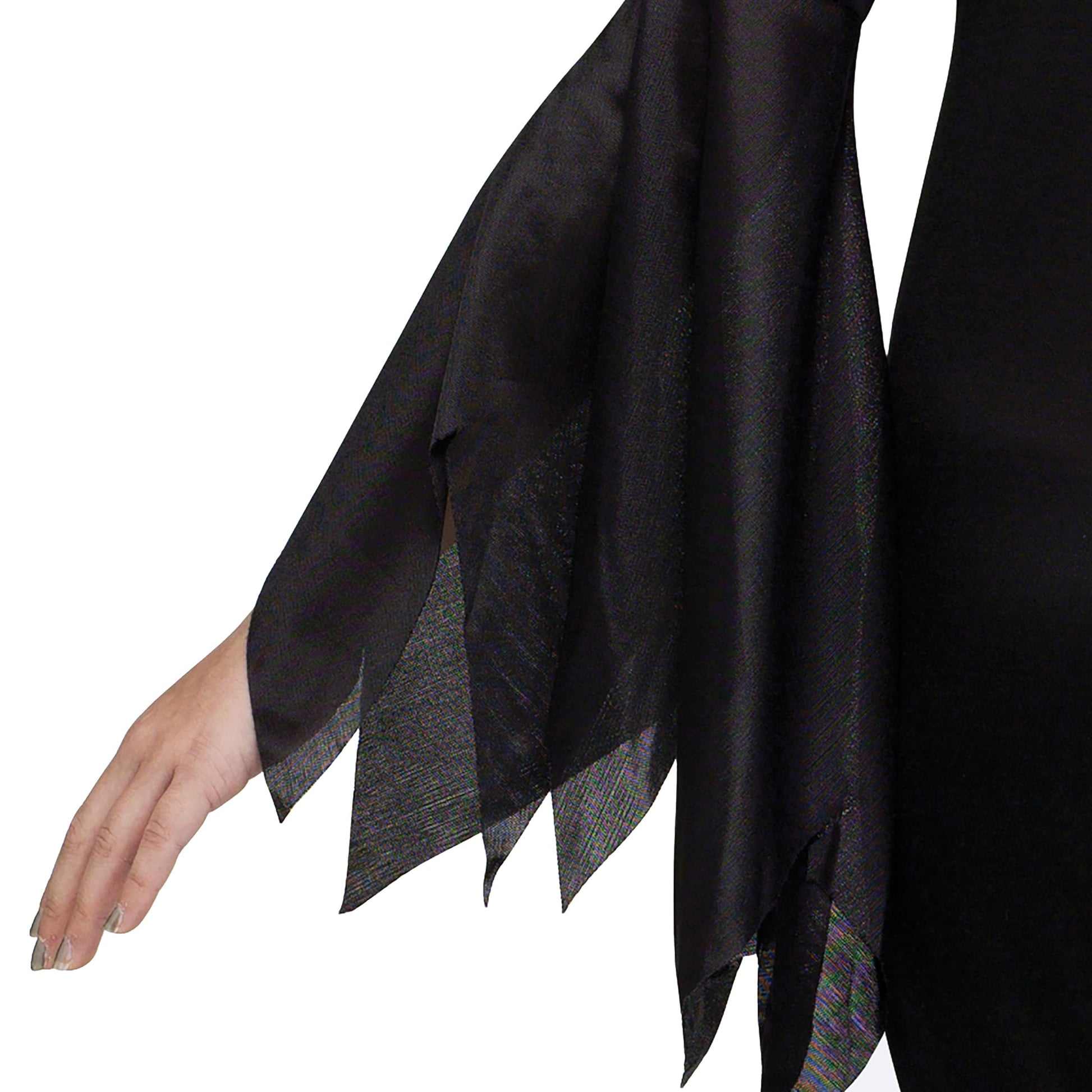 Floor-length design for dramatic effect | Perfect for Halloween or eerie costume events | Includes: Spooky black gown with long flowing sleeves