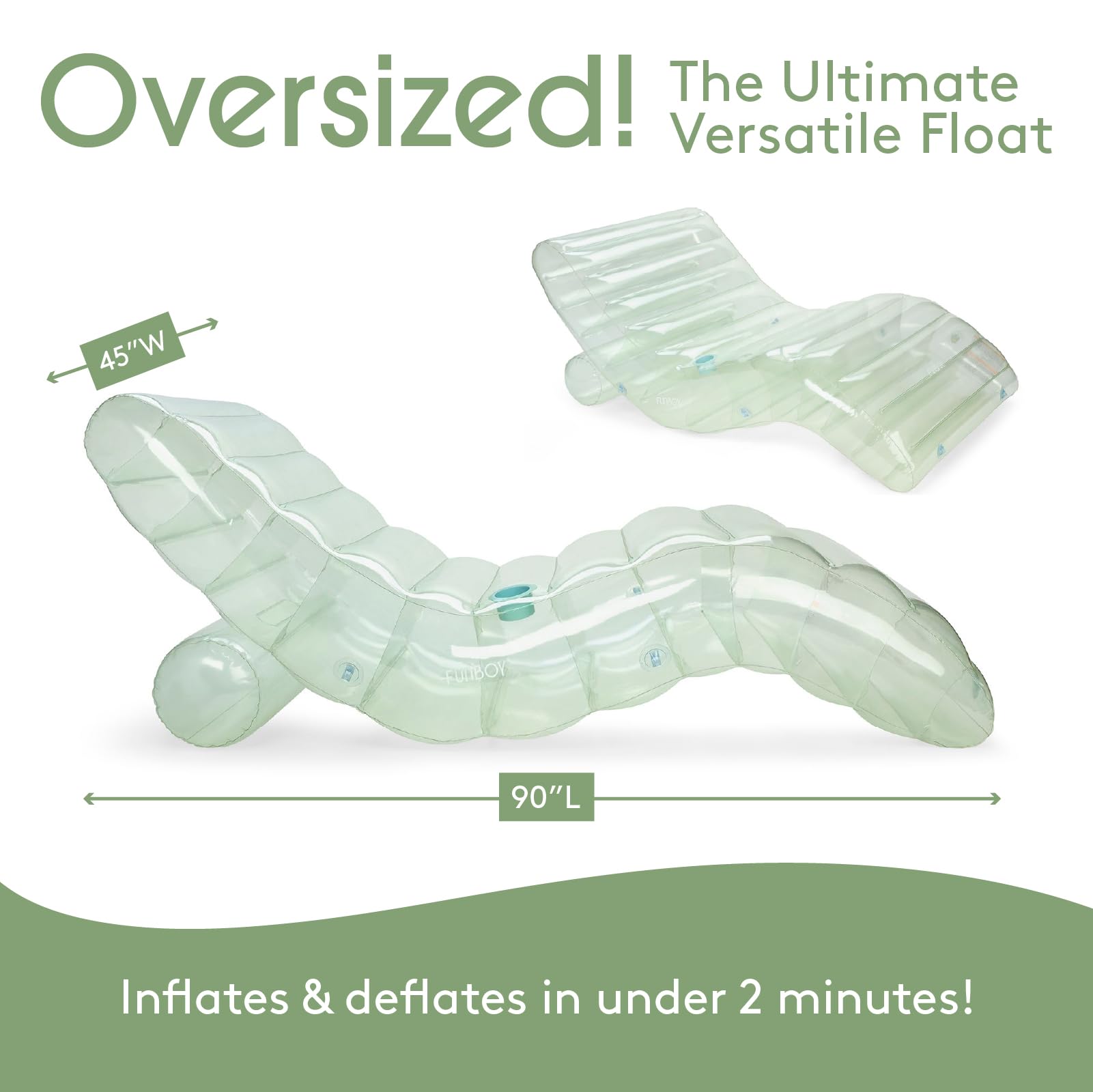 FUNBOY Giant Inflatable Seaglass Green Chaise Lounger - Large Transparent Pool Float Chair for Adults, Perfect for Summer Parties