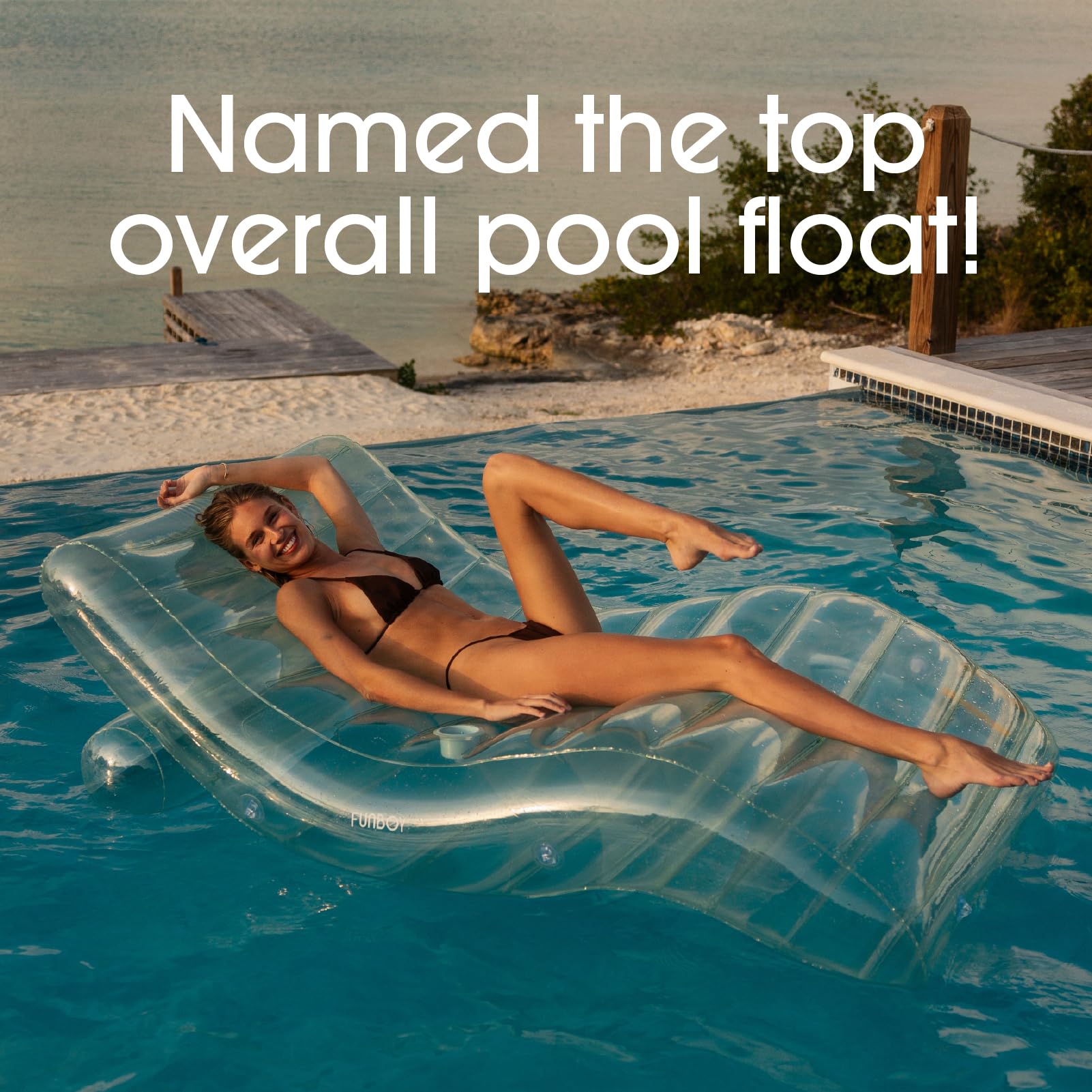 - The Ultimate Original Floating Chaise Lounger: The FUNBOY Chaise Lounger is crafted from new Seaglass Light Green Clear Material, offering a stylish and modern aesthetic that enhances your poolside experience.