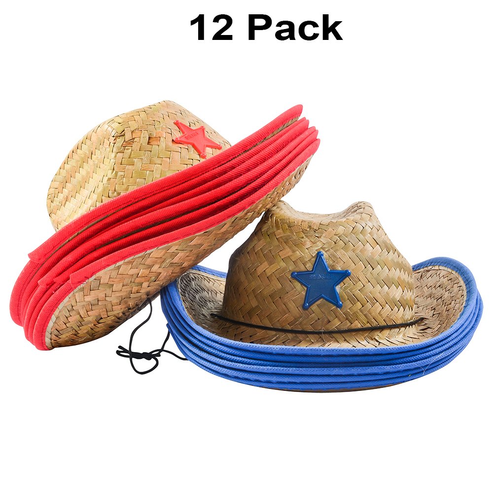 Funny Party Hats Cowboy Party Hats - 12 Straw Cowboy Hats - Medium - Red, Blue - Costume Headwear - For children, cowboy party p