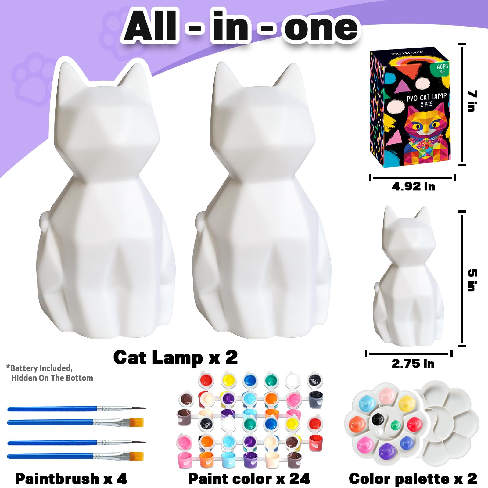 FUNZBO 2Pcs Paint Your Own Cat Lamp Kit - Arts and Crafts for Kids Teens Adults, Art Supplies Painting Kits for Kids, Toys for Girls Boys Halloween Birthday Gift Ages 3+