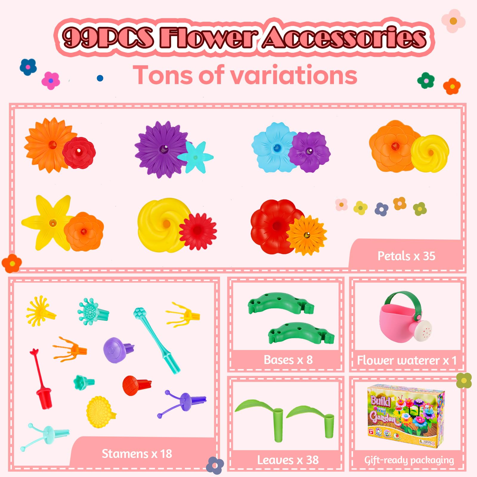 FUNZBO 99pcs Flower Garden Building Toys Set -Spring Toys for 3 4 5 6 7 8 9 Years Old Girls, STEM Montessori Educational Toys fo