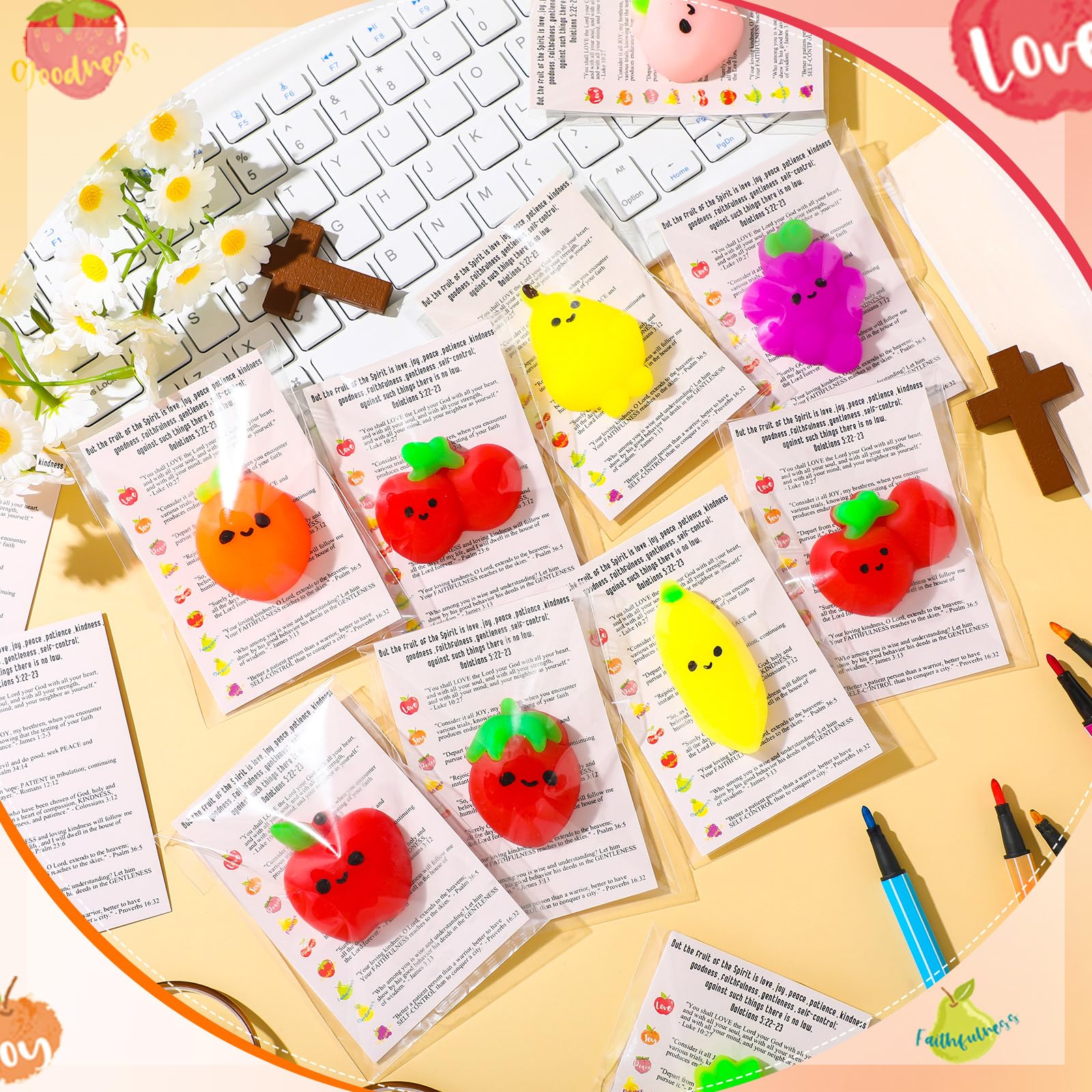 Fuyoooo 45 Sets Christian Fruit of The Spirit Gifts Bulk Mini Fruit Squeeze Religious Bible Verse Spiritual Cards for Students Church Sunday School Classroom Reward
