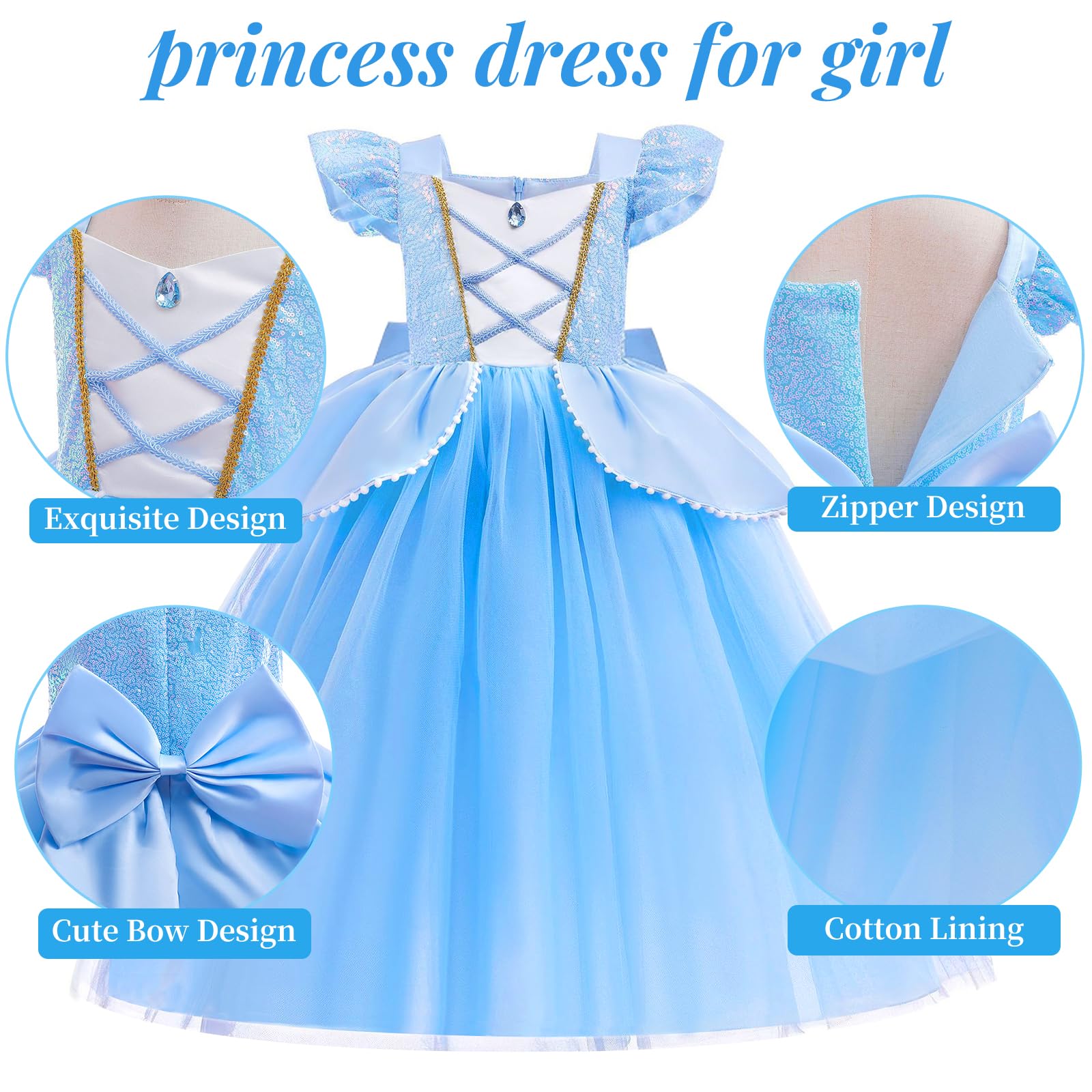 G.C Cinderella Dress Costume For Girls Toddlers Light Up Princess Dress With Crown Wand Earrings Necklace Gloves Toy Accessories