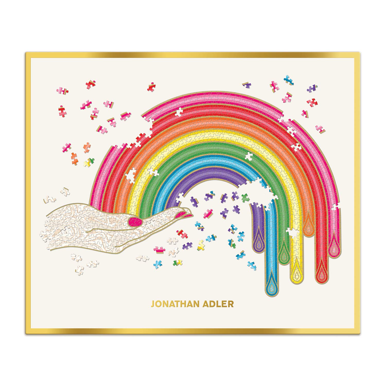 - Q: What is the theme of the Galison Jonathan Adler Rainbow Hand Jigsaw Puzzle? A: The theme of the Galison Jonathan Adler Rainbow Hand Jigsaw Puzzle features a vibrant rainbow spilling out of Adler’s signature open palm design, making it a colorful and engaging puzzle for all ages.