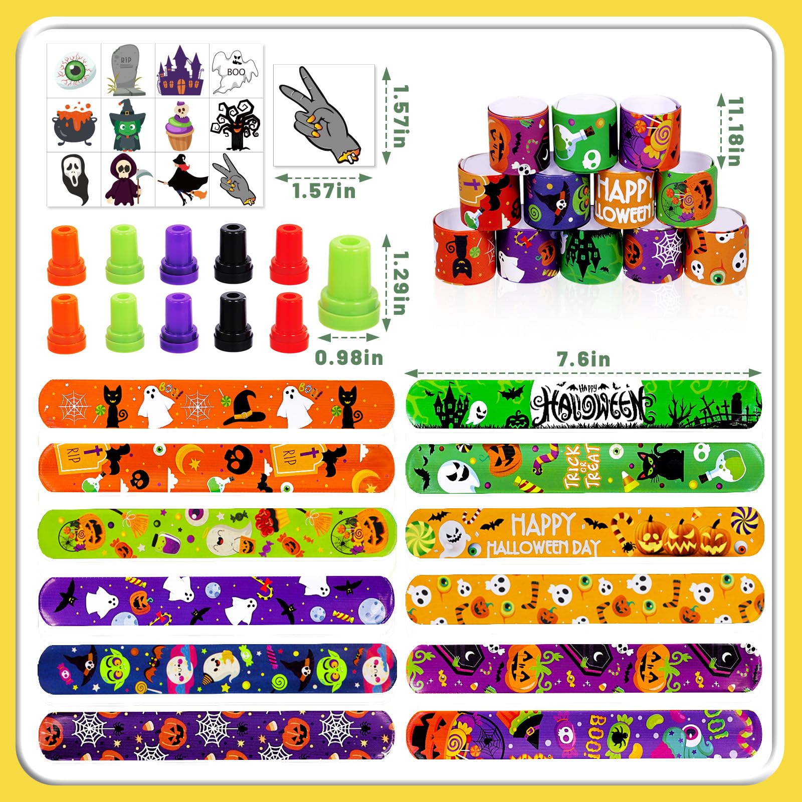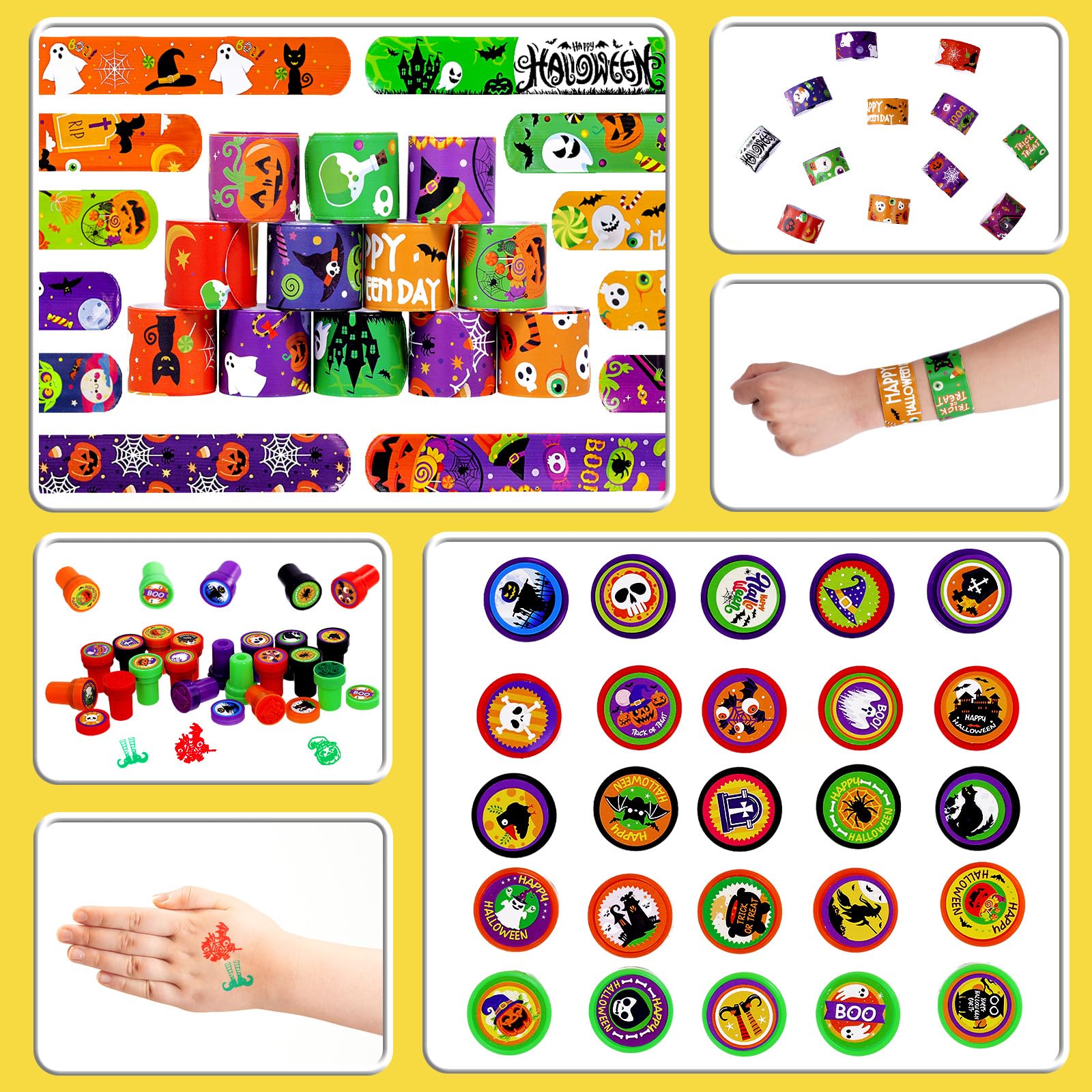 Garma Halloween Party Favors Toys for Kids, 25 Pcs Halloween Assorted Stamps with 12 Pcs Slap Bracelets and 288 Tattoos Hallowee