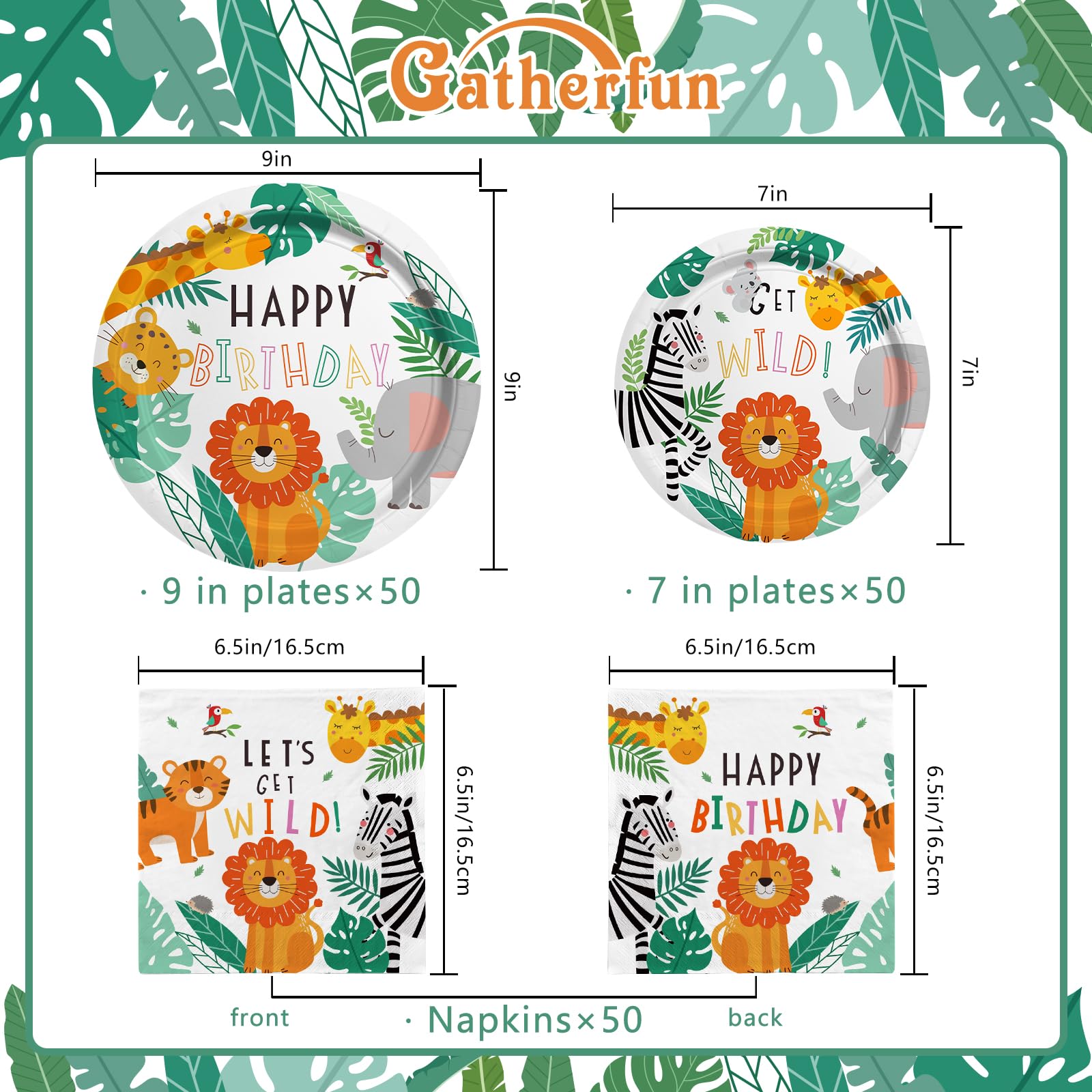 Gatherfun Safari Birthday Party Supplies Jungle Disposable Paper Plates Napkins For Safari Jungle Theme Birthday Decorations, Se