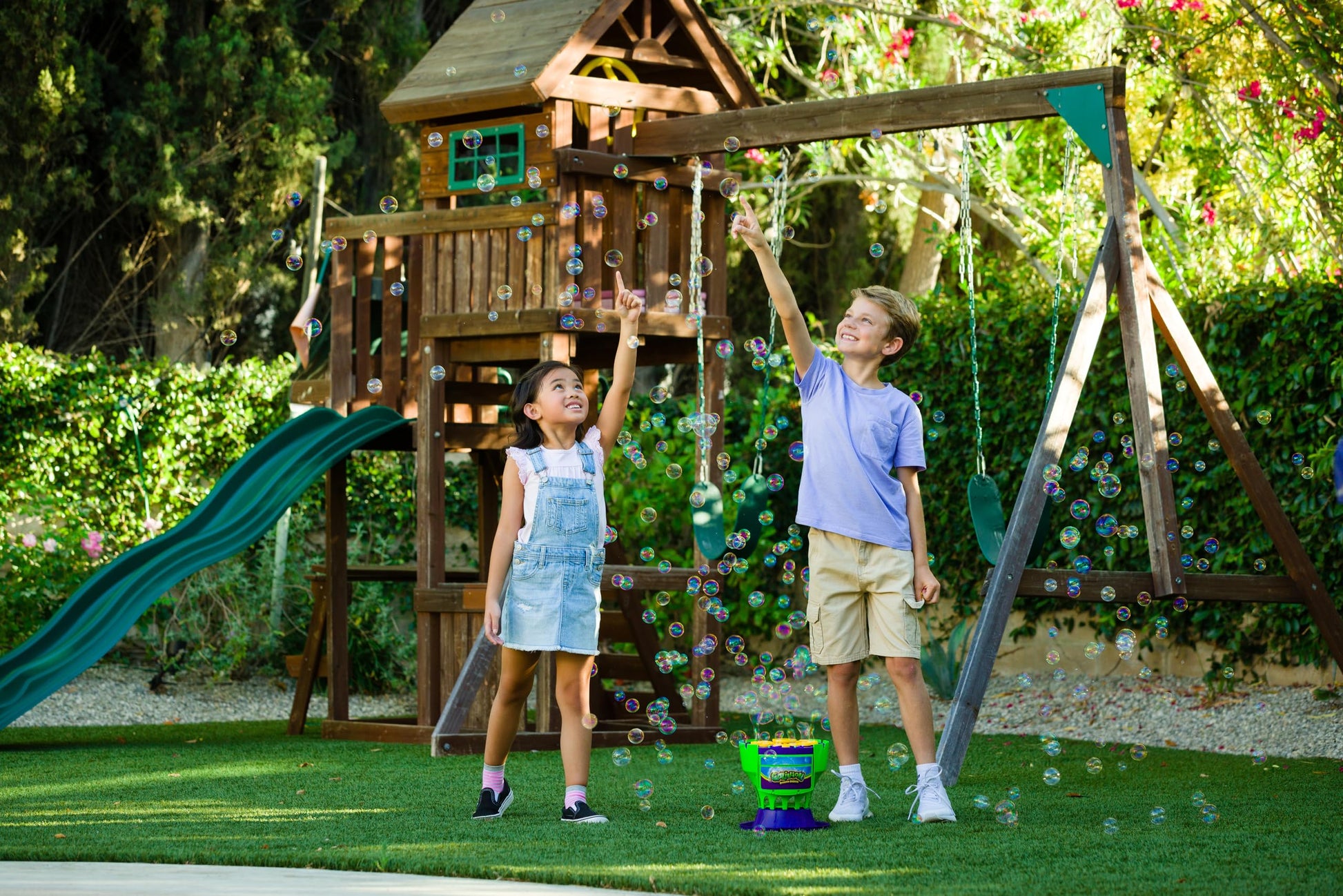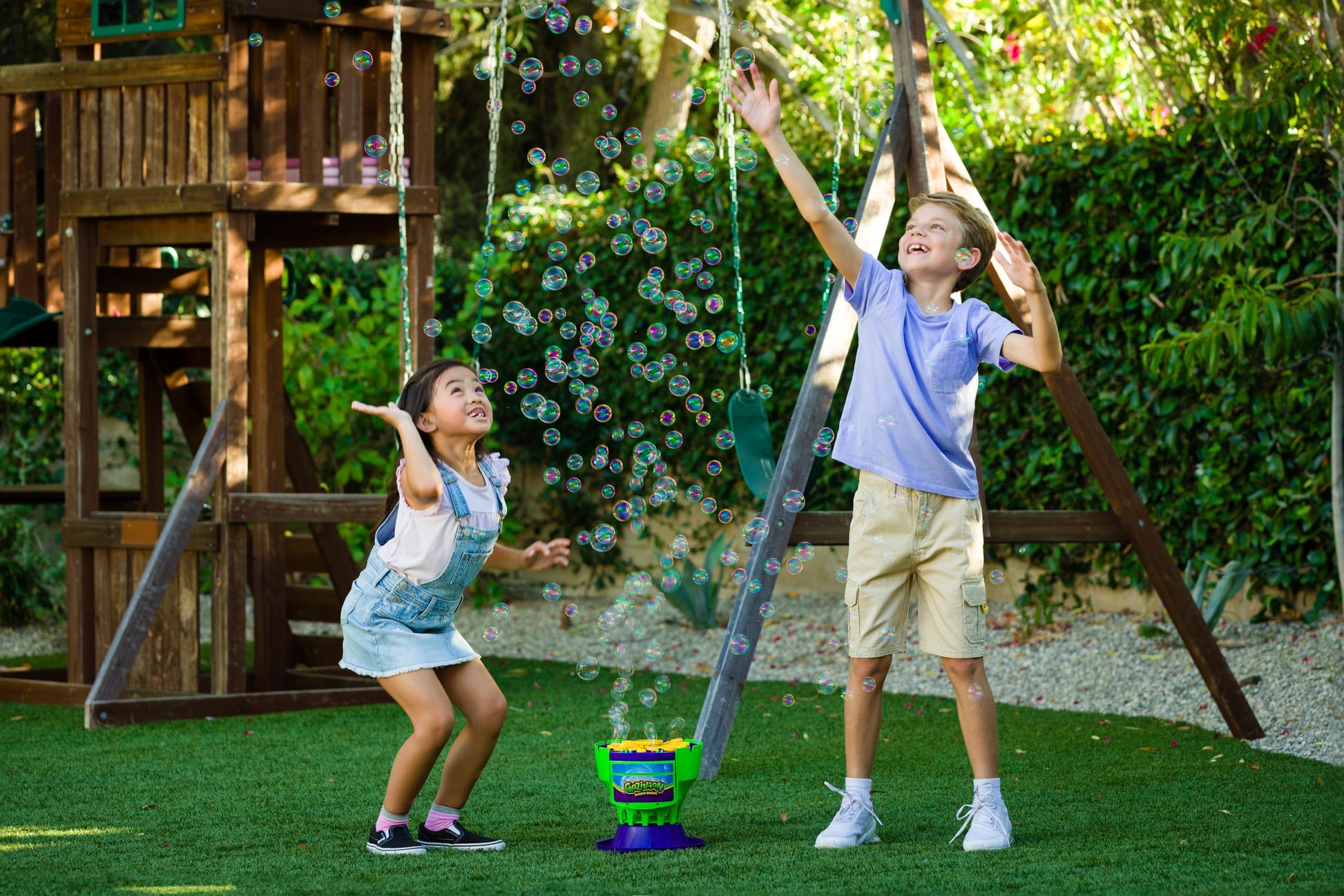 Get the party started with the Gazillion Ultimate Bubble Craze Bubble Machine! Our biggest bubble blaster yet, this mega machine quickly blows out thousands of bubbles in minutes at just the press of a button! It couldnt be easier to enjoy a flurry of bubbles all day, sure to keep the kids entertained for hours on end! With built-in colour-changing LED lights, our bubble maker is perfect for wedding bubbles, adding a special effect to parties, birthdays, celebrations, or even just a fun playdate in the garden! Kids of all ages will love dancing, chasing, and popping the bubbles as the lights illuminate and sparkle. Say goodbye to messy play! The Ultimate Bubble Craze Bubble Machine has a smart removable base making clean-up quick and easy. Simply rinse with water to remove any residue between uses. Plus, you can quickly save your bubble solution for another day thanks to the built-in funnel, helping you pour any leftover bubble mix back into the bottle!