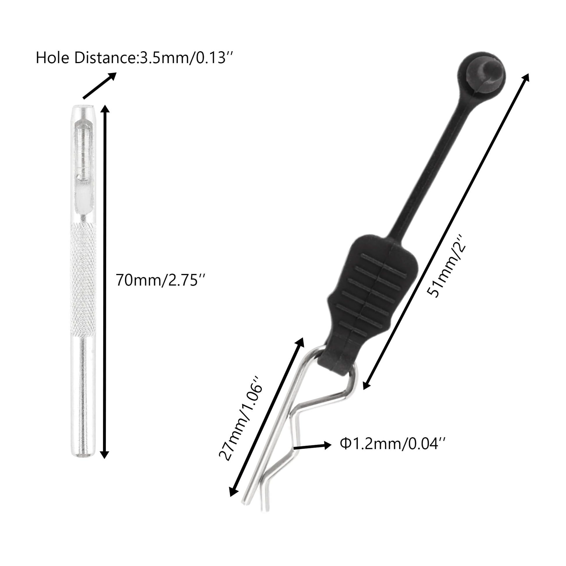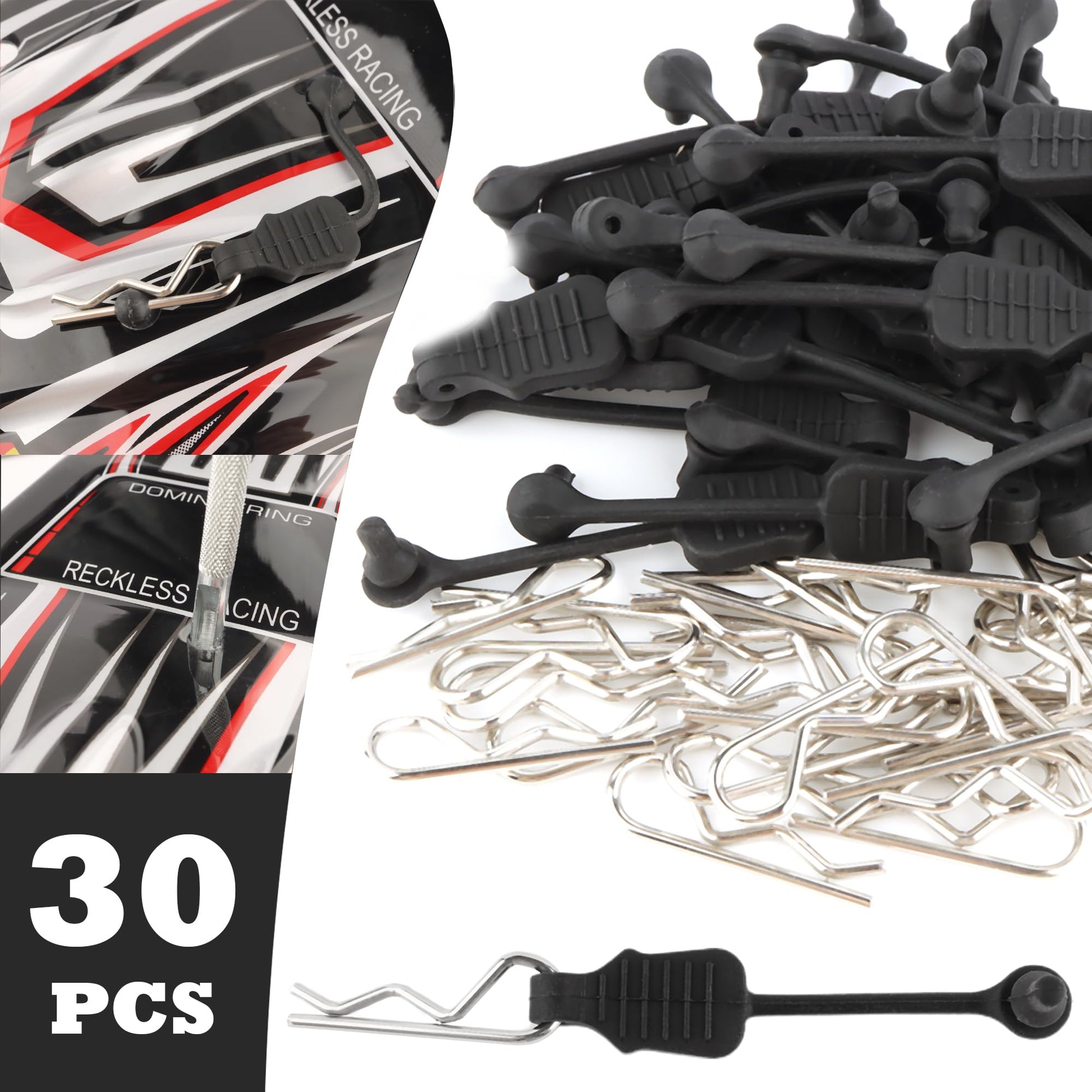 Key Features: 30-Piece 1.2mm RC Car Body Clip & 30 Pieces Retainer Lock Set - Securely fasten body panels on rc trcuks. The body pins compatible with All 1:10 1:12 1:14th Scale RC Model Cars, Such as TRAXXAS / HPI / Team Associated / Redcat Racing / Axial / Exceed RC / Losi / RC4WD / HSP / Himoto / Tamiya and other compatible RC vehicles. Universal design ensures fitment with most brands, provided dimensions align (verify specifications for your specific model). Specification: Material: Metal & Rubber Plastic Size: 1.2mm RC Body Clips Color: Silver RC Clips Retainer Lock :Black Package Includes: 30 1.2mm RC Car Body Clip 30 Retainer Lock Pull Tab 1 Body Reamer