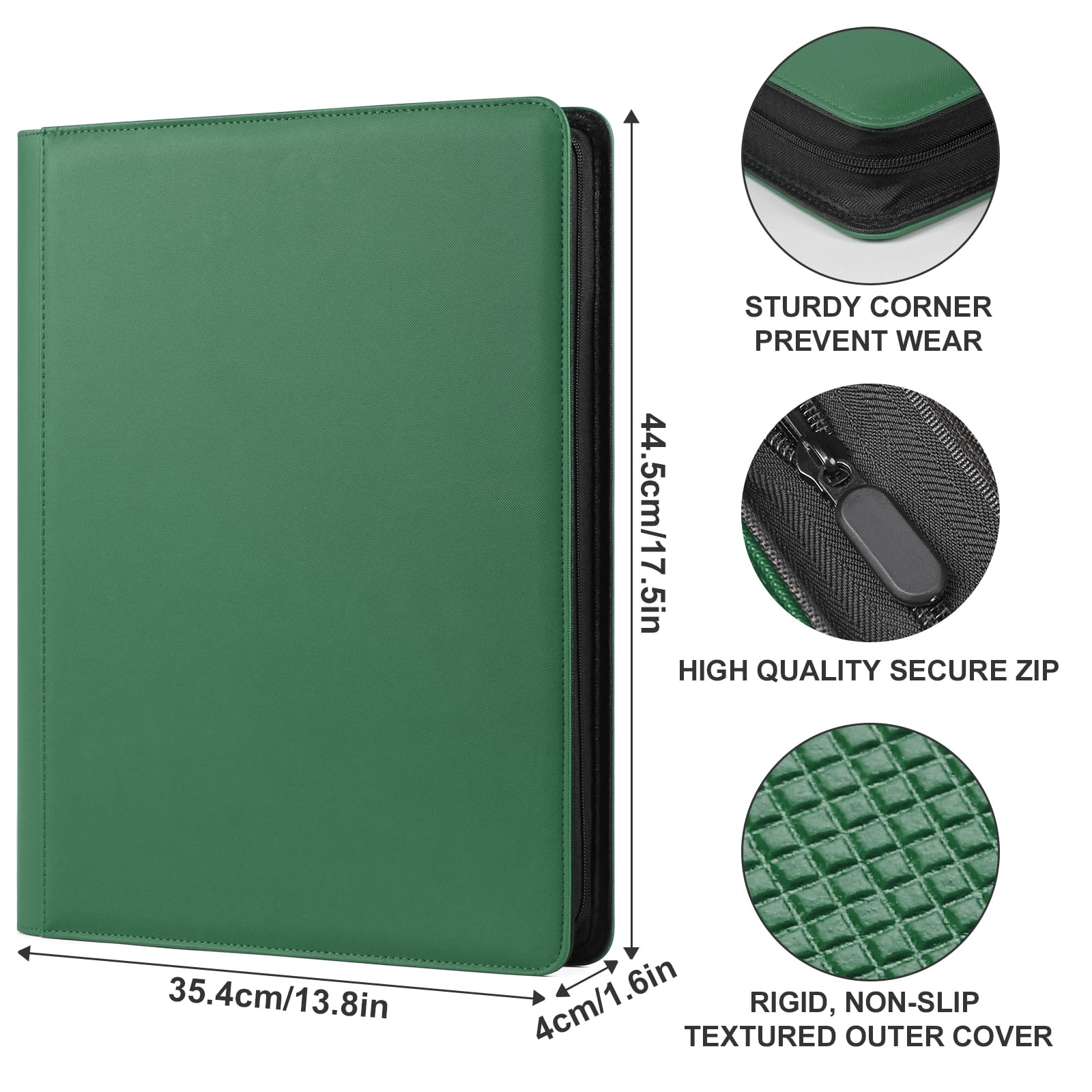 GEAoffice enhanced 1000 Trading Card Binder Large Side Loading 16 Pocket Card Collection Binder Album Folder for MTG TCG & Sports Green