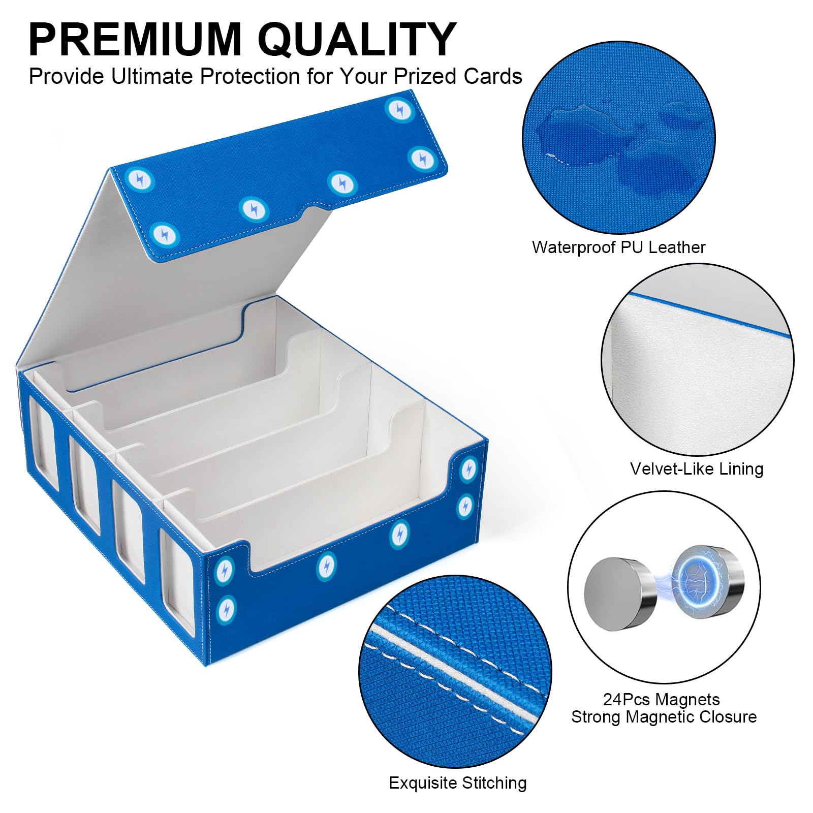 GEAoffice Trading Card Storage Box for 3200+ Cards With Display Windows enhanced MTG Commander Deck Box With Card Supporters & Divider Commander Storage box for YuGioh TCG Magic Game Blue/White