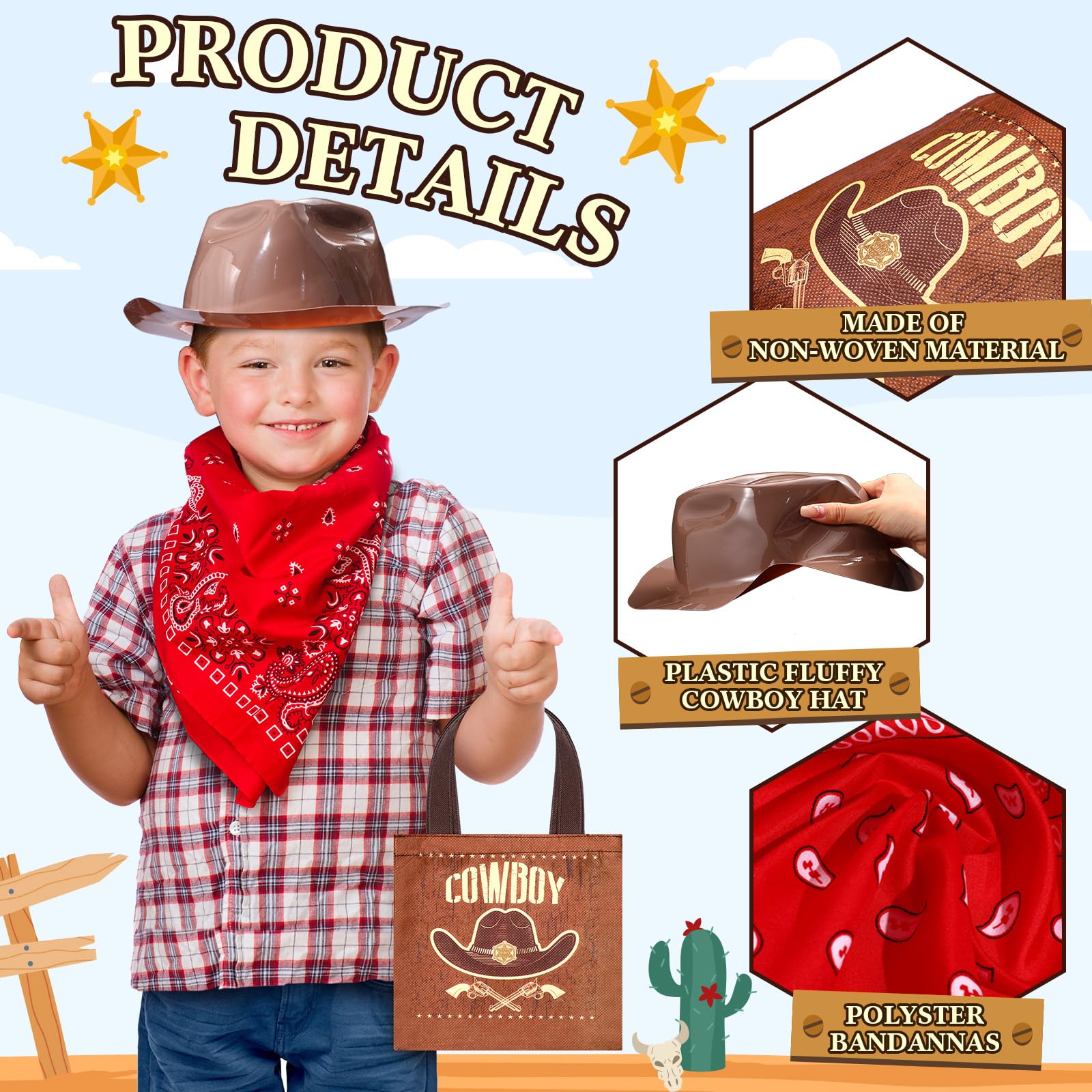 Geetery 36 Pcs Cowboy Hat Western Bandana Treat Bags Set Plastic Cowboy/Cowgirl Themed Party Hats Western Costume Accessories(Br