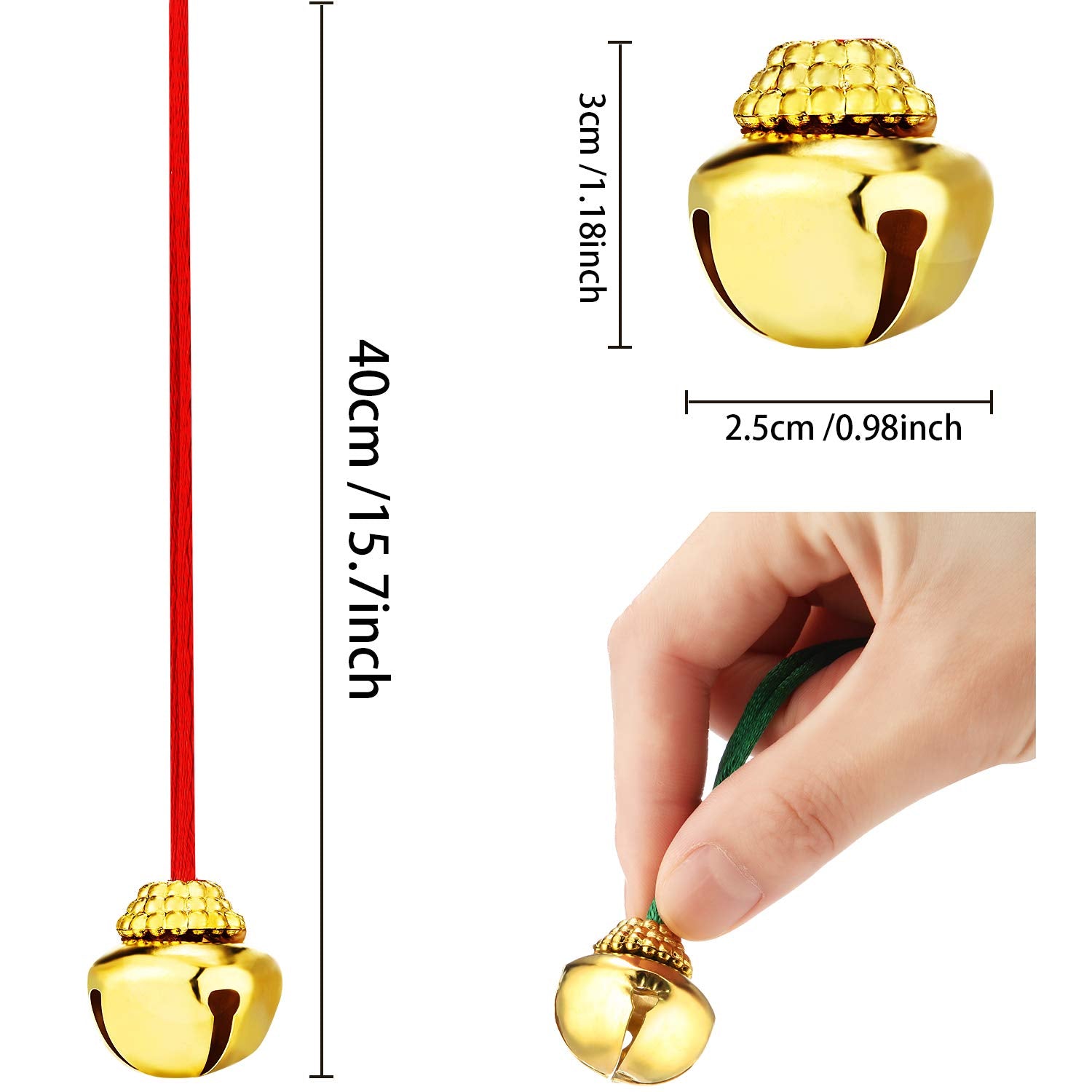 - Q: What is the size of the Christmas bells and the strings? A: Each Christmas bell measures approximately 2.5 x 3 cm (1 x 1.2 inches), and each string is about 40 cm (15.7 inches) in length, allowing for adjustable fitting based on your decoration needs.