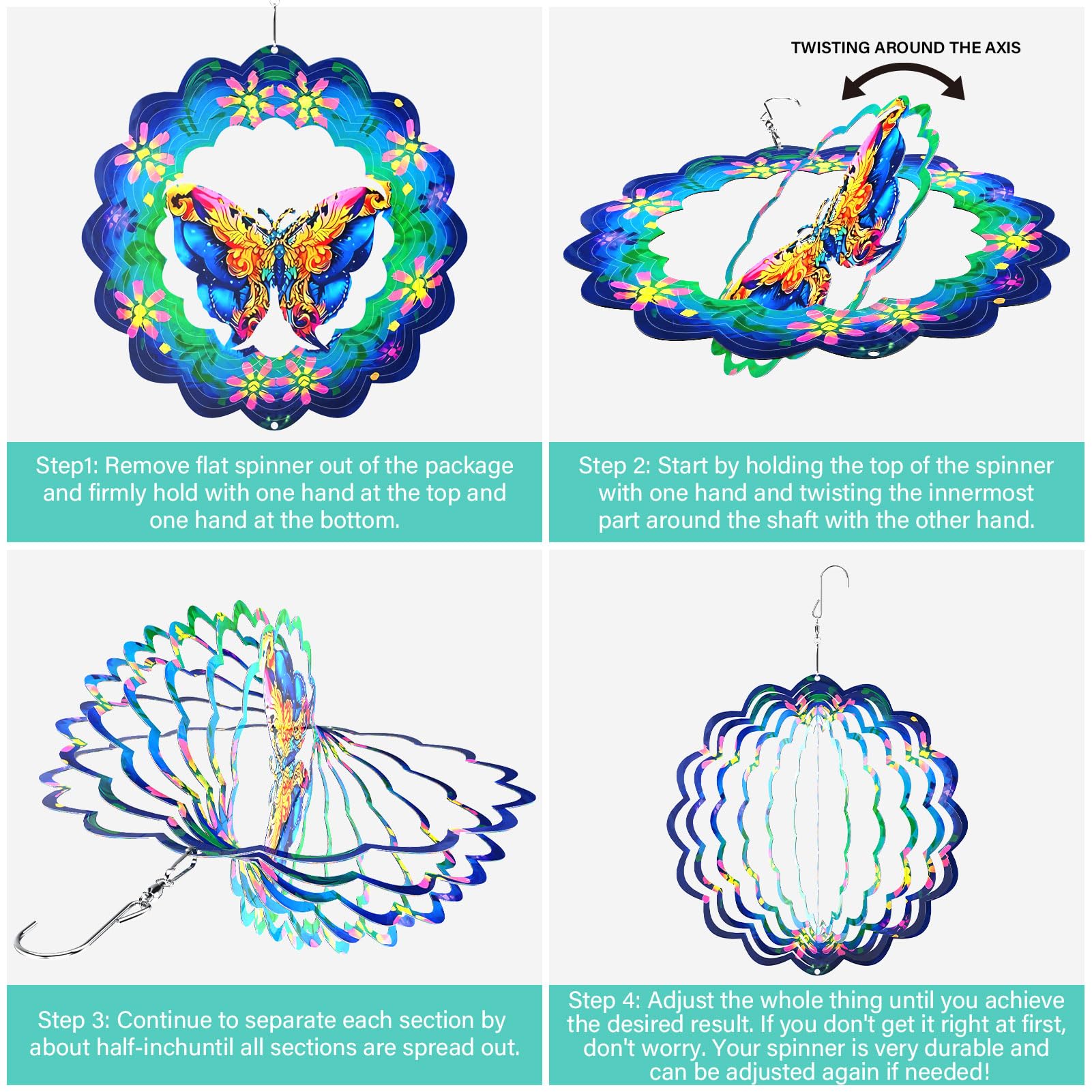 - Q: How do I properly install the wind spinner for best performance? A: To install the wind spinner, use the included detachable S-shaped hook, which allows for 360-degree rotation. Simply hang it on a lamp, tree, or balcony, and twist the sides to your desired angle to achieve the perfect 3D effect.