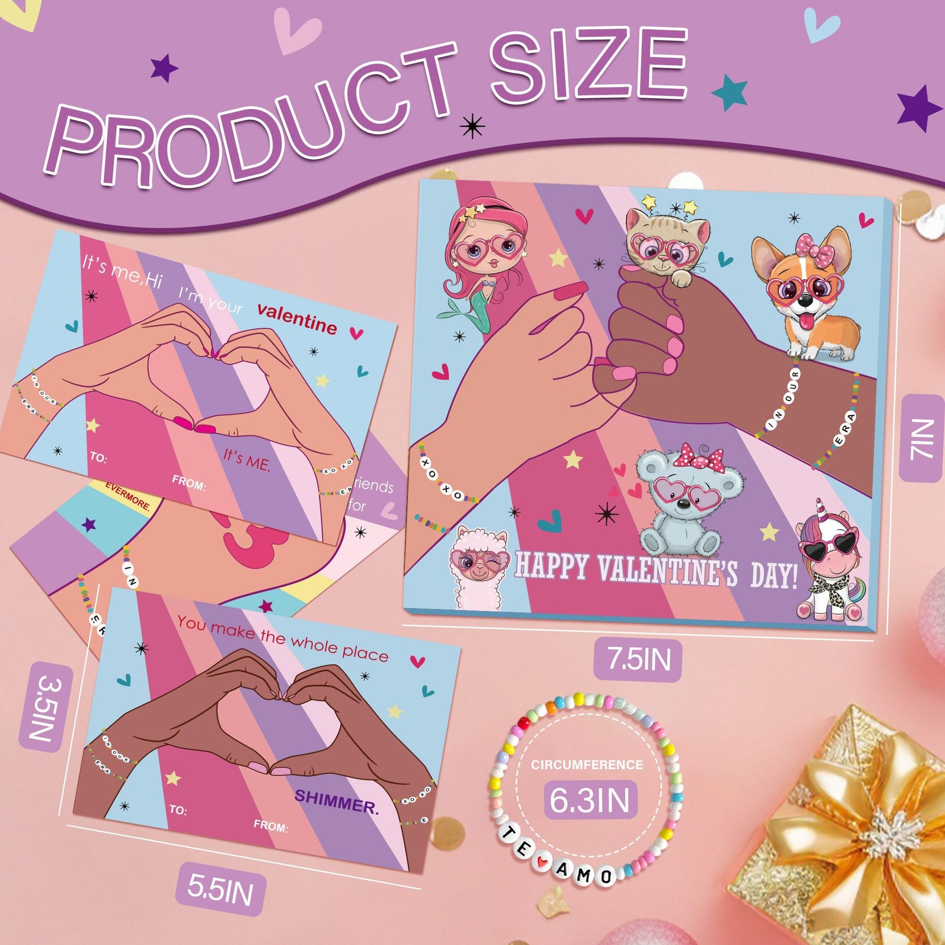 Gerigity Valentines Day Cards for Kids School - 28 Pack Valentines Bracelets for Kids, Friendship Valentines Cards, Valentines D