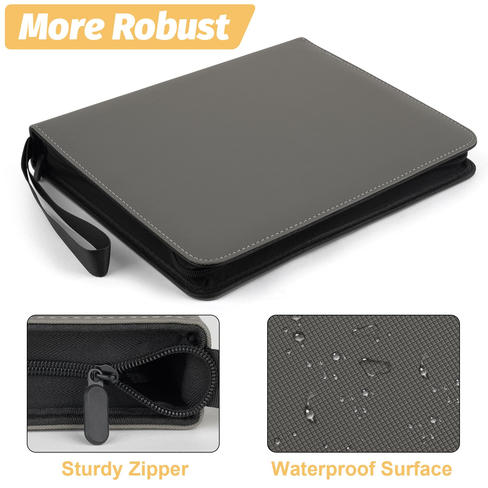 View compareGERMUN 9 Pocket Card Binder enhanced Zip Trading Card Binder 720 Double Sided Pocket PU Card Collection Binder Collector Card Album Card Folder for MTG TCG Sports Cards Game Cards (GREY)