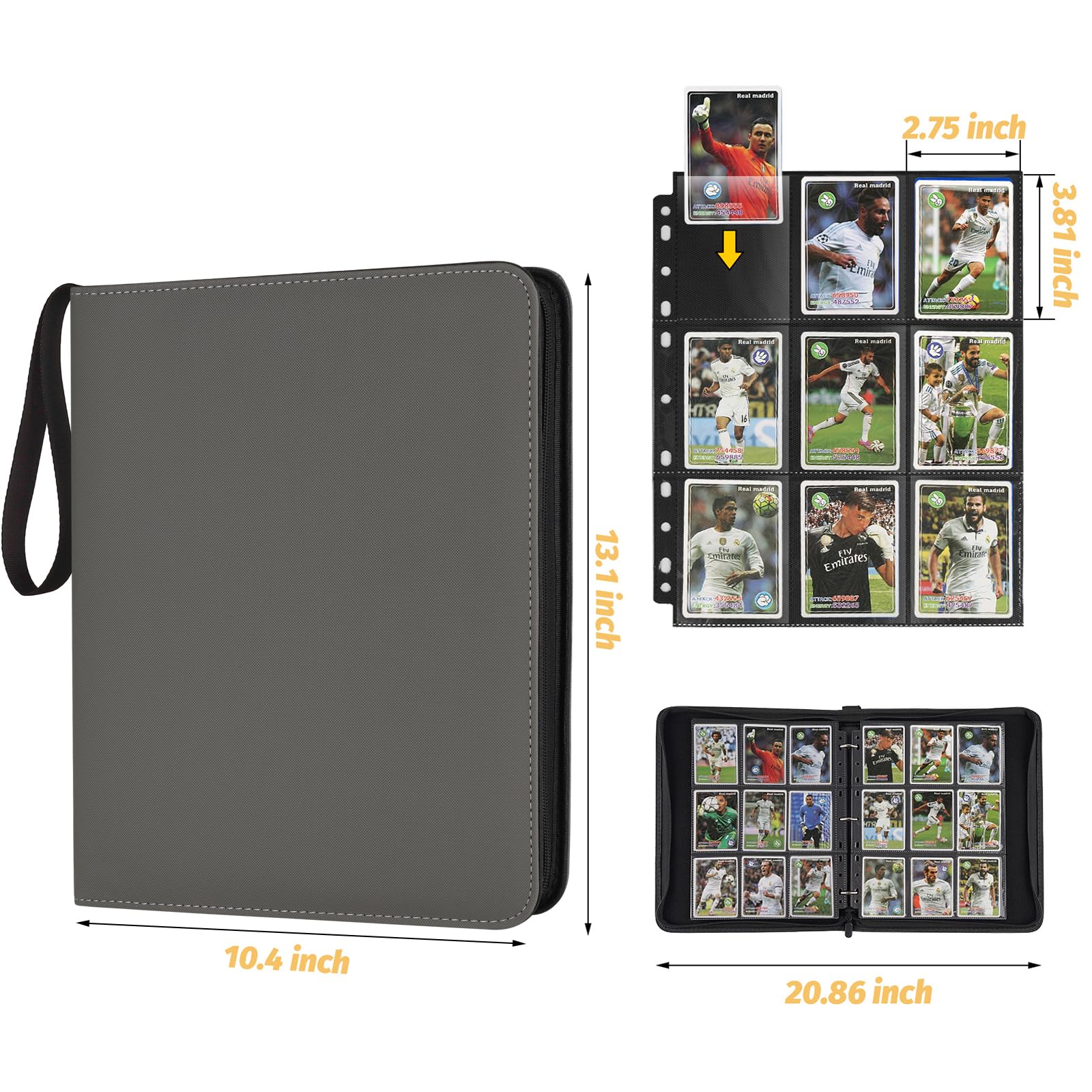 GERMUN 9 Pocket Card Binder enhanced Zip Trading Card Binder 720 Double Sided Pocket PU Card Collection Binder Collector Card Album Card Folder for MTG TCG Sports Cards Game Cards (GREY)