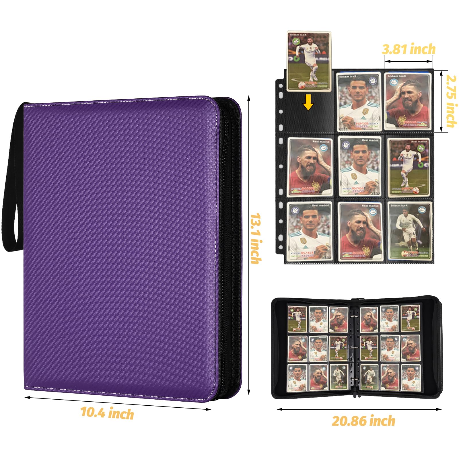 GERMUN 9 Pocket Card Binder enhanced Zip Trading Card Binder 720 Double Sided Pocket PU Card Collection Binder Collector Card Album Card Folder for MTG TCG Sports Cards Game Cards (purple)
