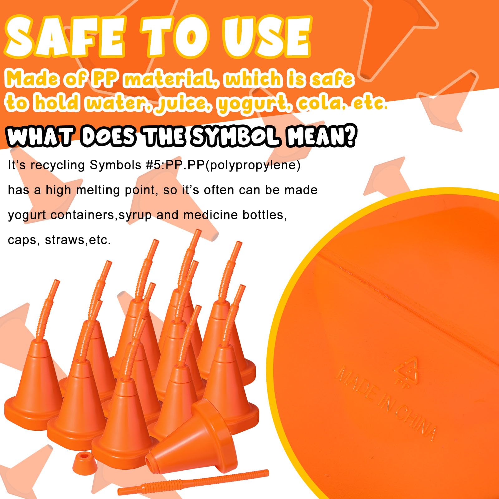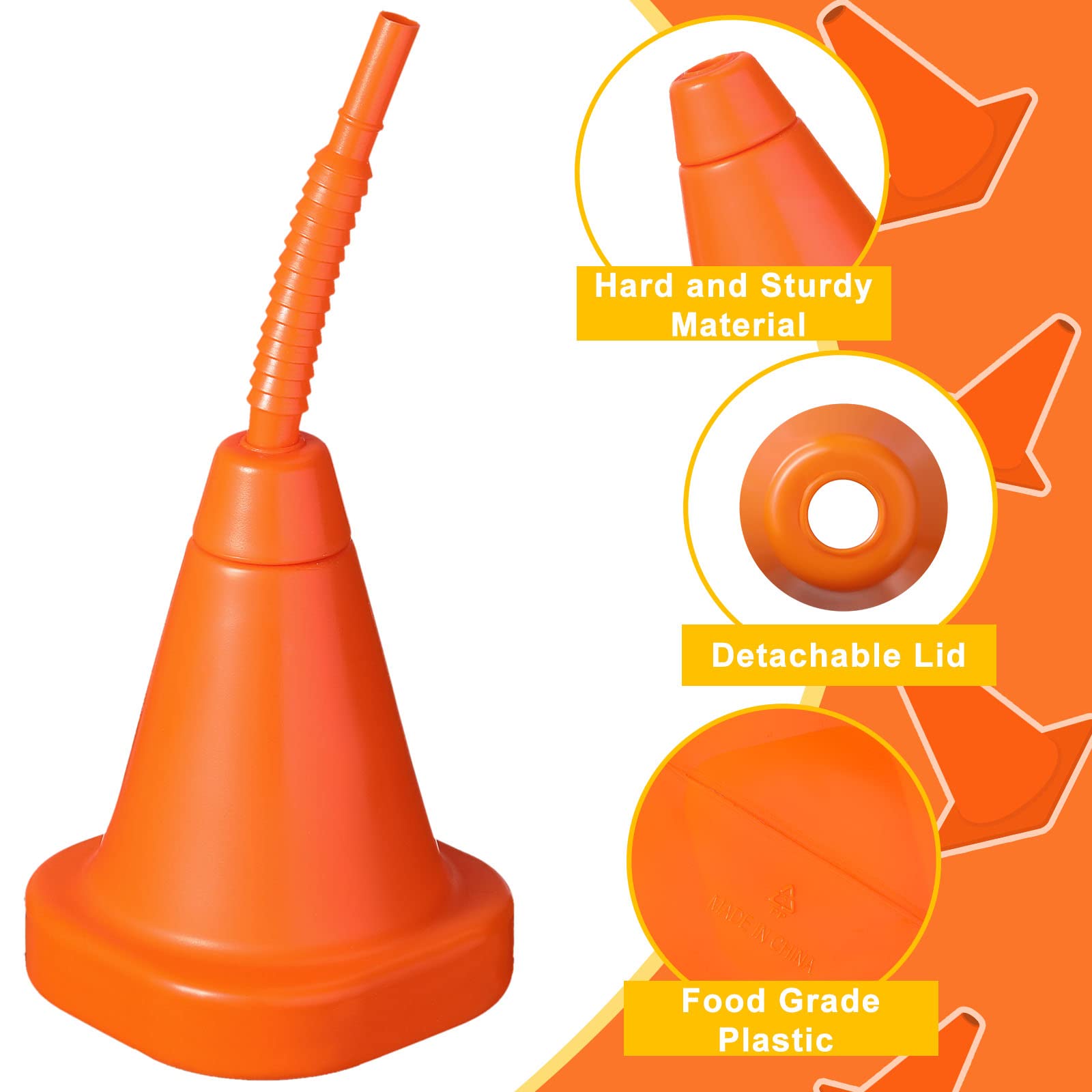 - Q: Do the cups come with straws, and how many are included? A: Yes, the package includes 24 traffic cone cups along with 24 matching orange straws, making it ideal for party supplies and birthday favors.