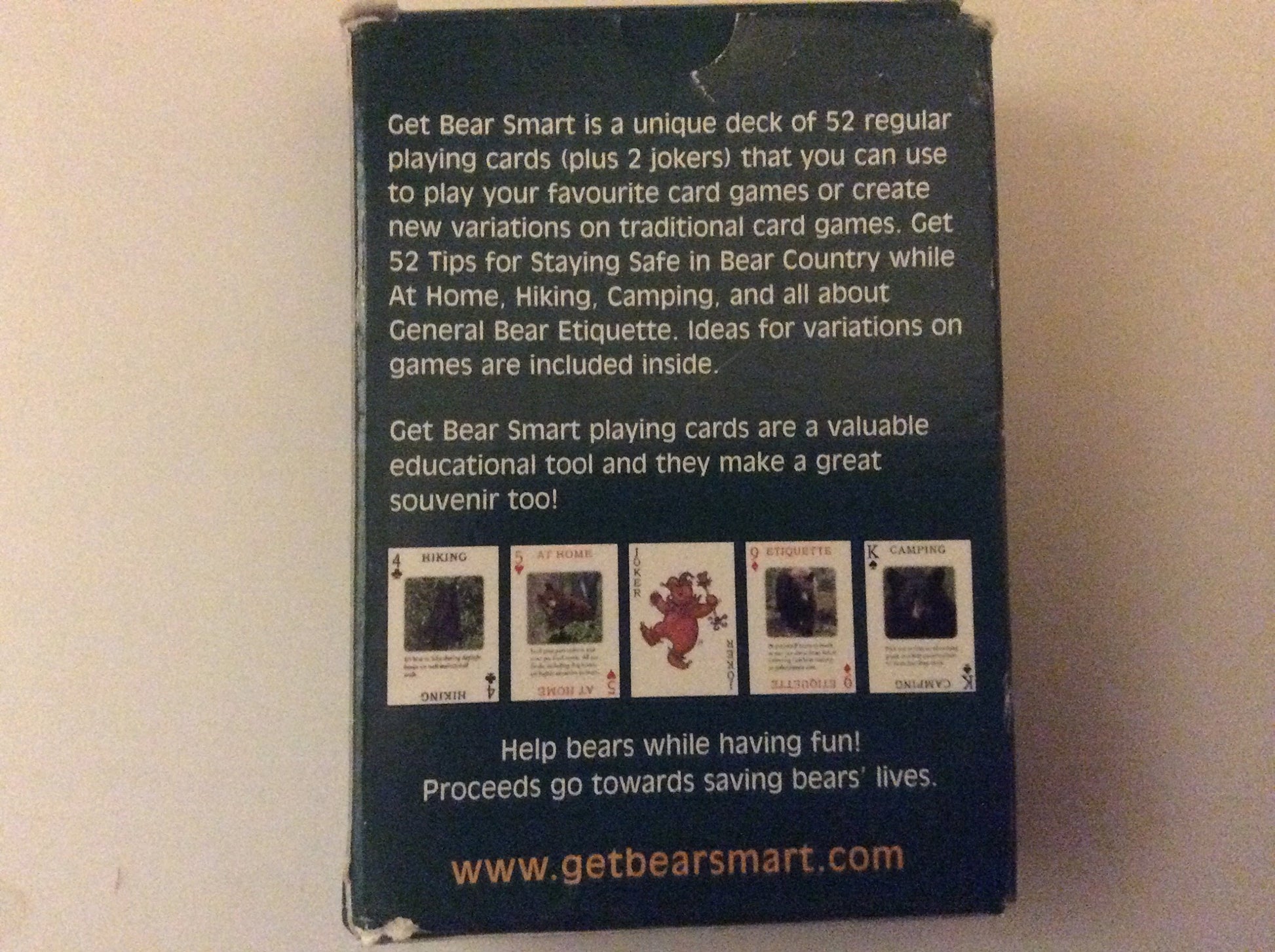 - Q: What makes the Bear Smart Playing Cards educational? A: The Bear Smart Playing Cards feature 52 unique cards, each providing essential tips for staying safe in bear country, along with informative facts about different bear species. This combination makes them both fun and educational.