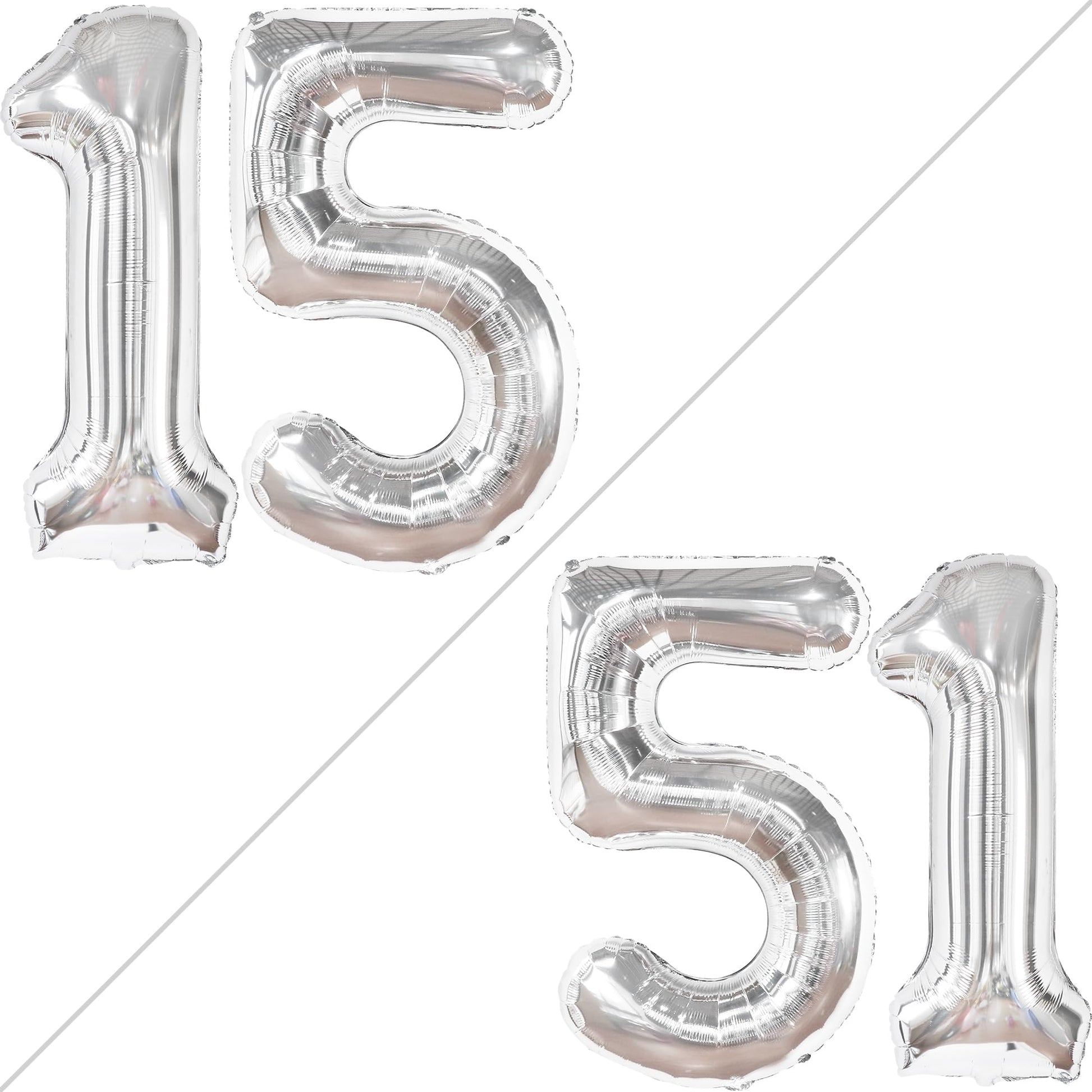 - Silver 15 Balloon Number – Pack of 1, Mylar Foil Balloon, 40 Inch