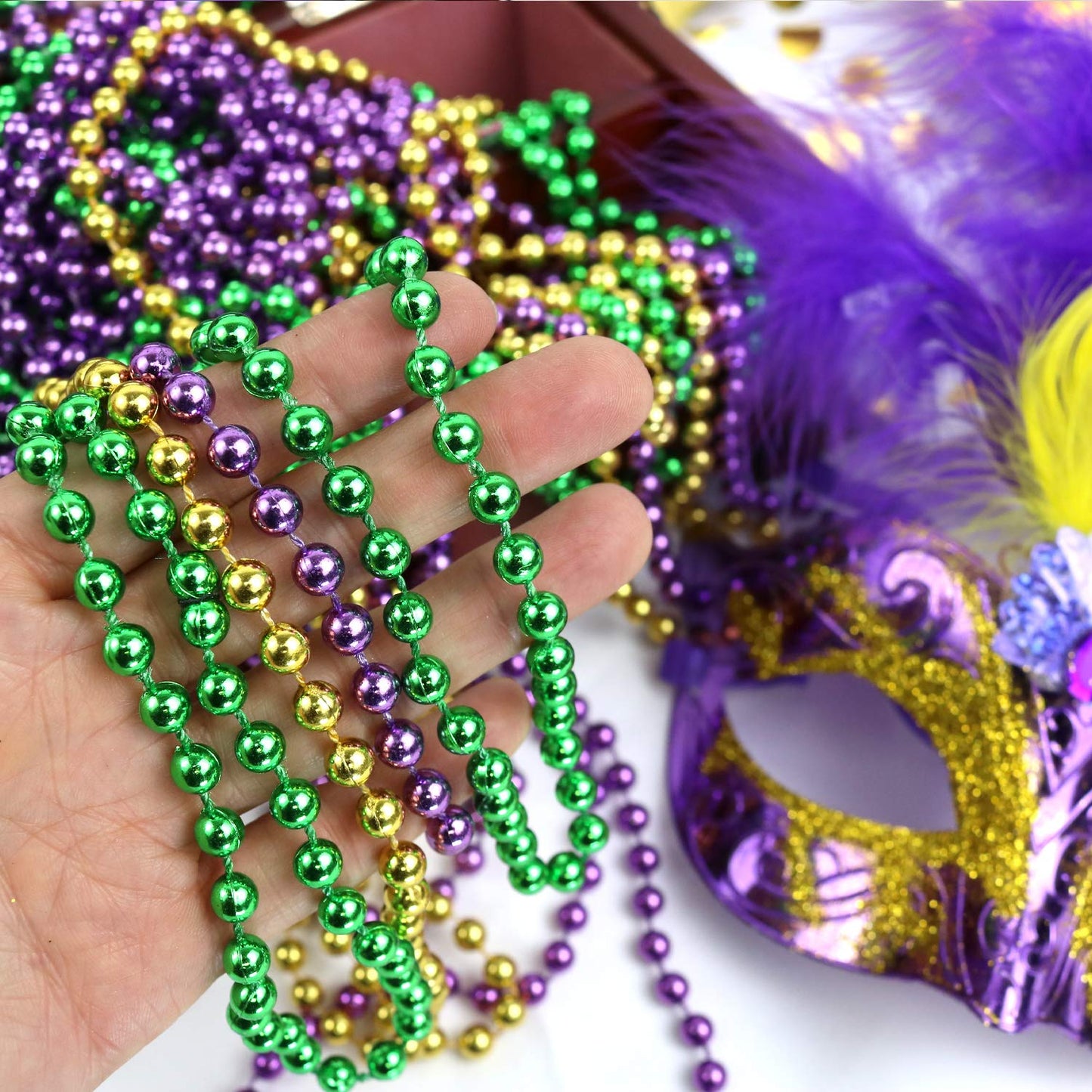 GIFTEXPRESS 12 pcs Mardi Gras Beads NecklacesThis 12 pack multi colors beads necklaces come in metallic gold, green, and purple, which is a perfect color set for Mardi Gras Festival.Besides of Mardi Gras Trafitional scene, these beads necklace are also ideal for fun party, such as party or decoration for Halloween, Christmas , New Year Eve, St. Patrick Day, bachelorette party or a birthday party, etc.
