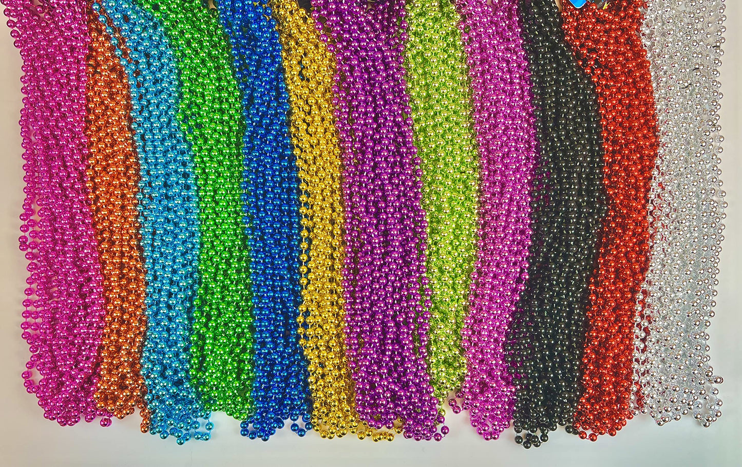 - Q: How should I care for my Mardi Gras beads to ensure they last? A: To keep your Mardi Gras beads in good condition, avoid exposing them to extreme heat or direct sunlight for prolonged periods. Clean them with a damp cloth if necessary, and store them in a cool, dry place when not in use.