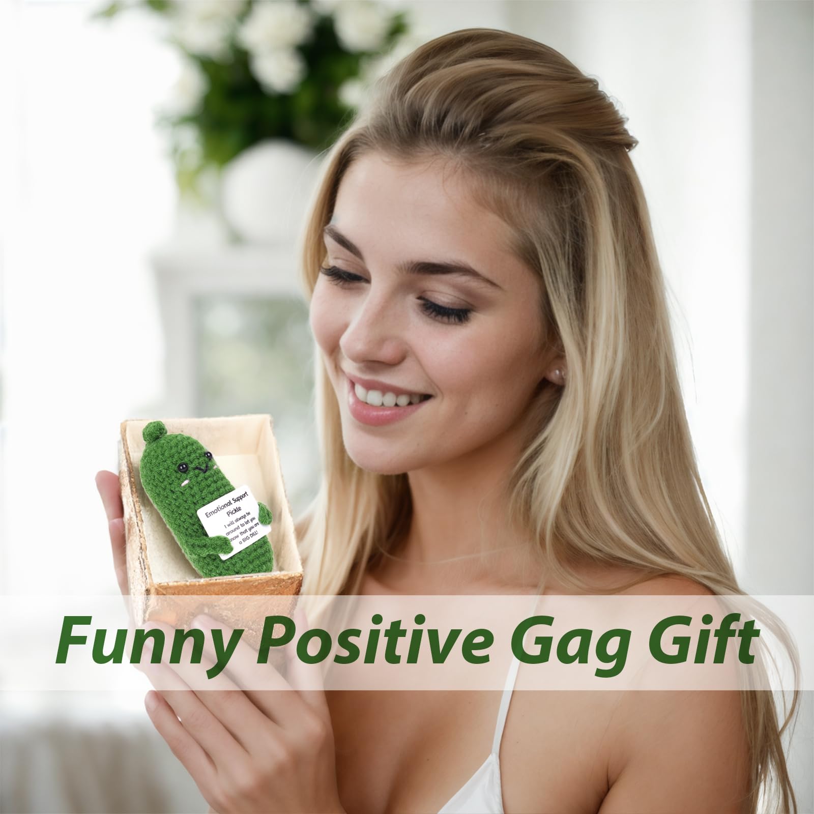Giftiara Funny Pickle Doll, Cute Crochet Cucumber Toy With Positive Card Cheer Up Funny Gag Gifts For Emotional Support Best Friend Birthday Housewarming Women Teacher Fall (Pickle)