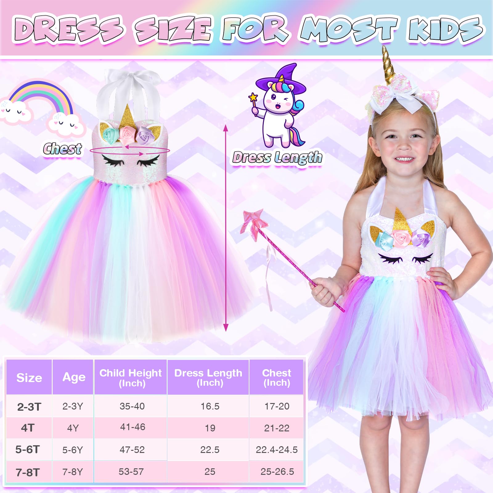 Giftinbox Unicorn Dress For Girls: Fancy Unicorn Outfits, Every Girl Wants For A Birthday, Halloween, Or Dress-Up Party. All The Unicorn Princesses Need Is In This Unicorn Gift Box. This Cute Unicorn Dress With Exquisite Unicorn Accessories Makes Your Little Girl The Most Dazzling Unicorn Princess. | Unique Sequin Unicorn Costume: Top Lined With A Silk-Like Fabric, Very Soft And Comfortable. Rainbow Strips Tulle Are Complete Handmade,Vibrant Color And Looks Very Fluffy. Put On It Won'T Make Kids Feel Any Uncomfortable. The Top This Unicorn Princess Costume For Girls Is Designed With Elastic, Which Is Convenient For Children To Put On And Take Off. And The Flower On The Dress Is Been Sewing Sturdy, Won'T Fall Off Easily. Choose Giftinbox Unicorn Costume For Girls, We Will Never Let You Down. | Ideal Gift For Girls 3-8 Years Old - We Offer 4 Sizes Of This Unicorn Costume For Girls. We Have Marked The Kid'S Height Range Suitable For What Sizes. To Determine The Best Size For Your Child, Please Refer To Our Size Chart And Note That There May Be An Error Of 1-2 Cm. We Recommend Checking Your Child'S Height/Chest Measurements To Make The Right Choice. Please Choose The Appropriate Size Refer To The Picture. If You Want A Loose Fit Please Choose An Up Size For Our Unicorn Girls. | Perfect For All The Parties And Dress Up Games: This Halloween Costumes For Girls Can Be Wide Use On Unicorn Theme Parties, Birthday Party, Christmas Party, Girls' Dress-Up Clothes, Halloween Parties,Photo Props, Role Play, And So On. Girls Can Put On The Unicorn Dress And Bring All The Cute Stuff To Show Up At Every Party. They'Ll Be The Most Beautiful Unicorn Princesses When They Put On This Unicorn Girls Halloween Costumes, And Kids Will Spend Hours Role-Playing Fun. | Great Gift For Toddler Girls: Lovely Unicorn Accessories For Girls Will Be Amazing Gifts For Girls. Put On This Shiny Unicorn Princess Dress Up Clothes For Girls That Will Catch All Eyes Of The Party. A Great Gift Choice For Aged 3-8-Year-Old Girls On Christmas, Birthdays, Halloween, And Dress Up Party! Her Little Eyes Will Fill With Joy When She Opens This Gift. On Your Child'S Special Day, Let’S Create Some Unforgettable Memories For Her By Using This Cute Unicorn Halloween Costumes For Girls.