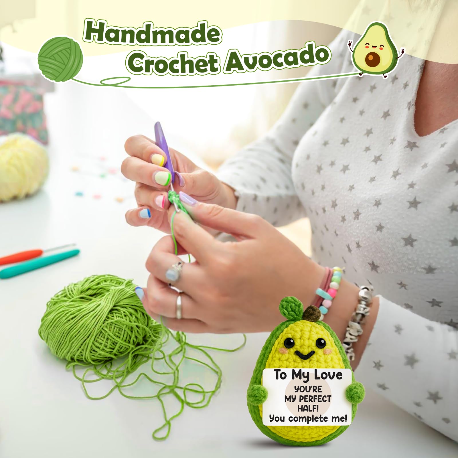 GiftMark Gifts for Boyfriend Girlfriend to My Love Positive Crochet Avocado Emotional Cheer Support Crochet Mini Handmade Anniversary Love Gifts for Women Men Couple Wife Husband