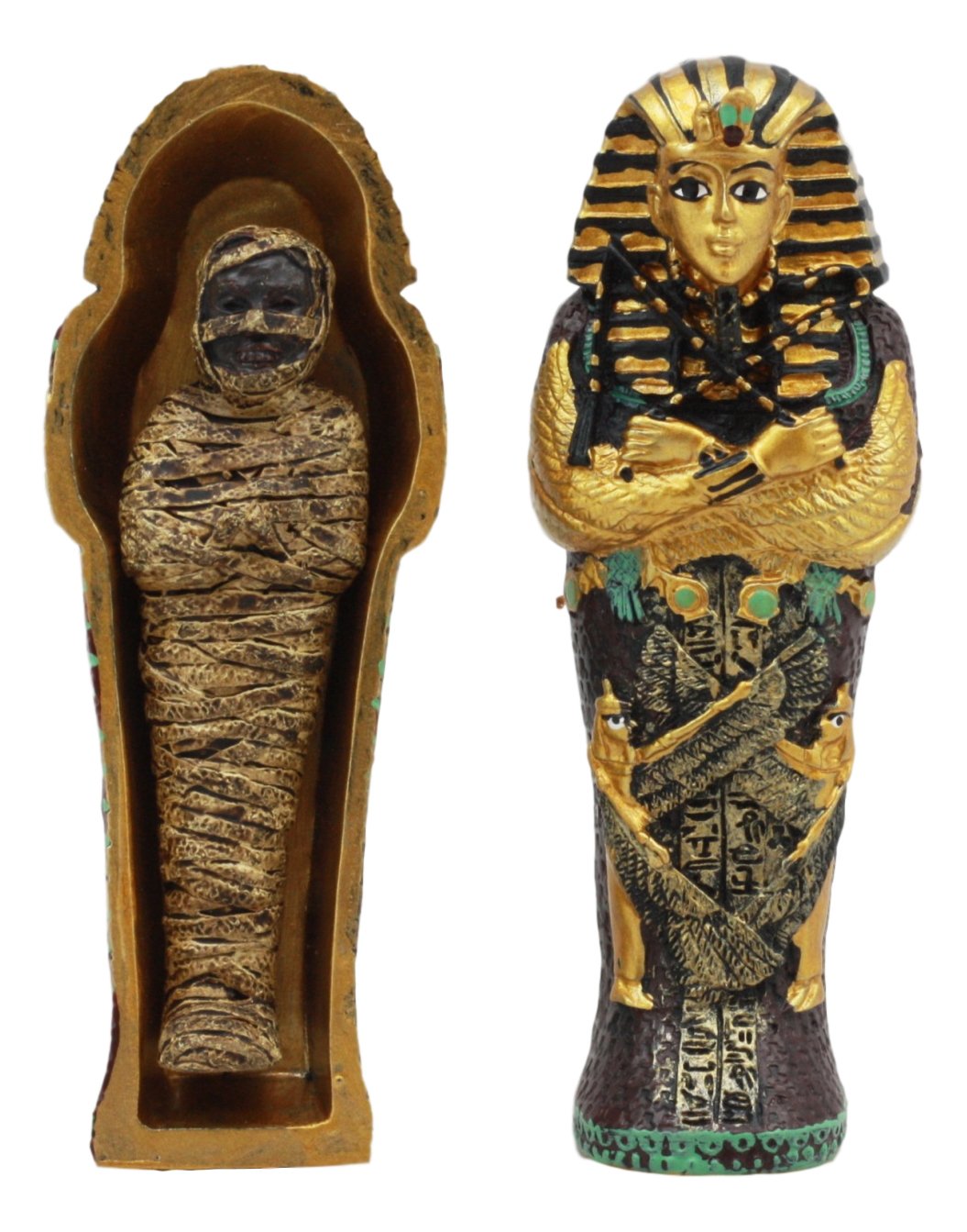 View compareGifts & Decor Ebros Egyptian King Tutankhamun Pharaoh Sarcophagus Coffin With Mummy Figurine Set 4' Long Egyptian Pharaoh Tombstone Historical Sculpture