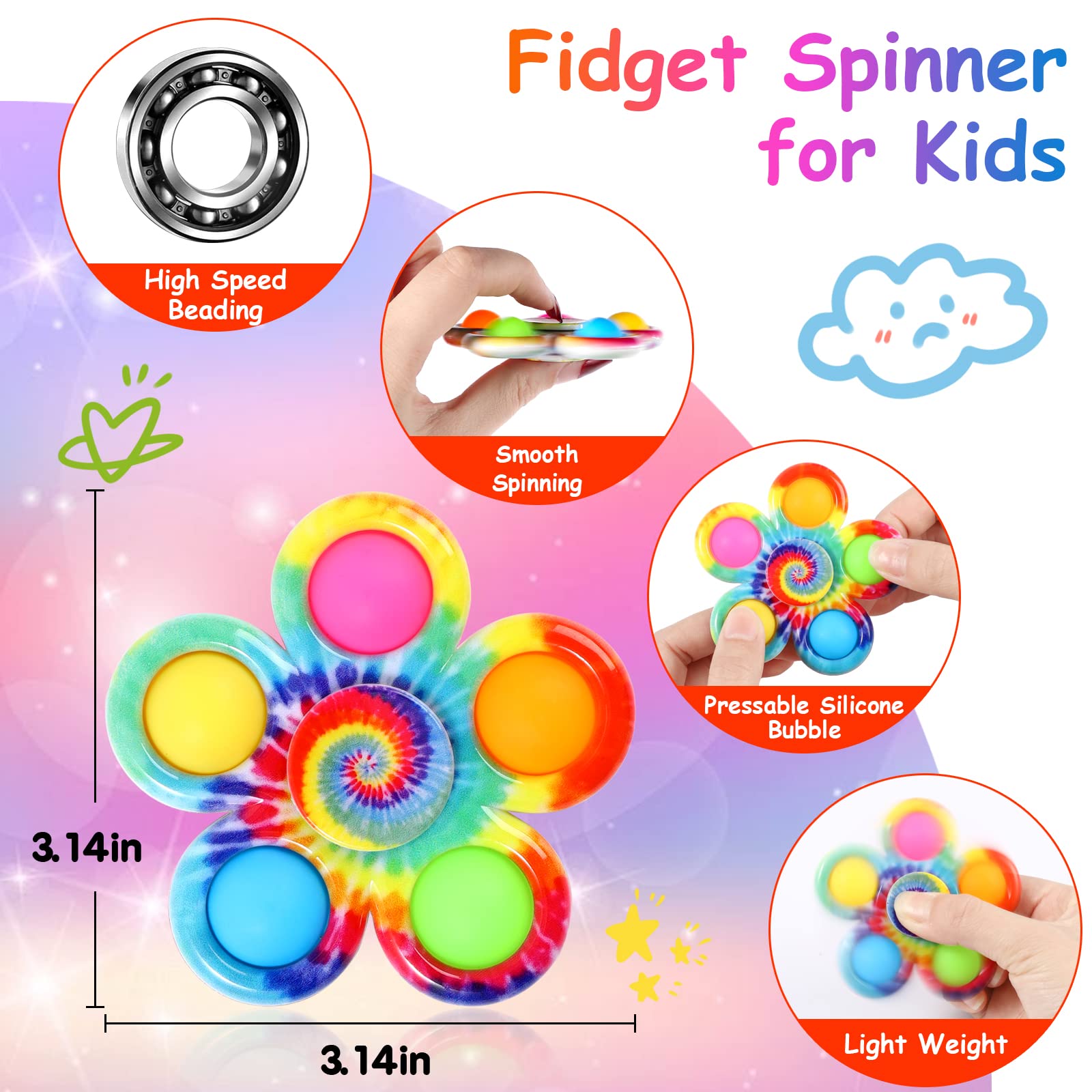 - Q: How do the fidget spinners help with anxiety and focus? A: These fidget spinners combine pop and spin features, providing a tactile experience that can help relieve stress, improve concentration, and assist individuals with ADHD and autism in managing anxiety.