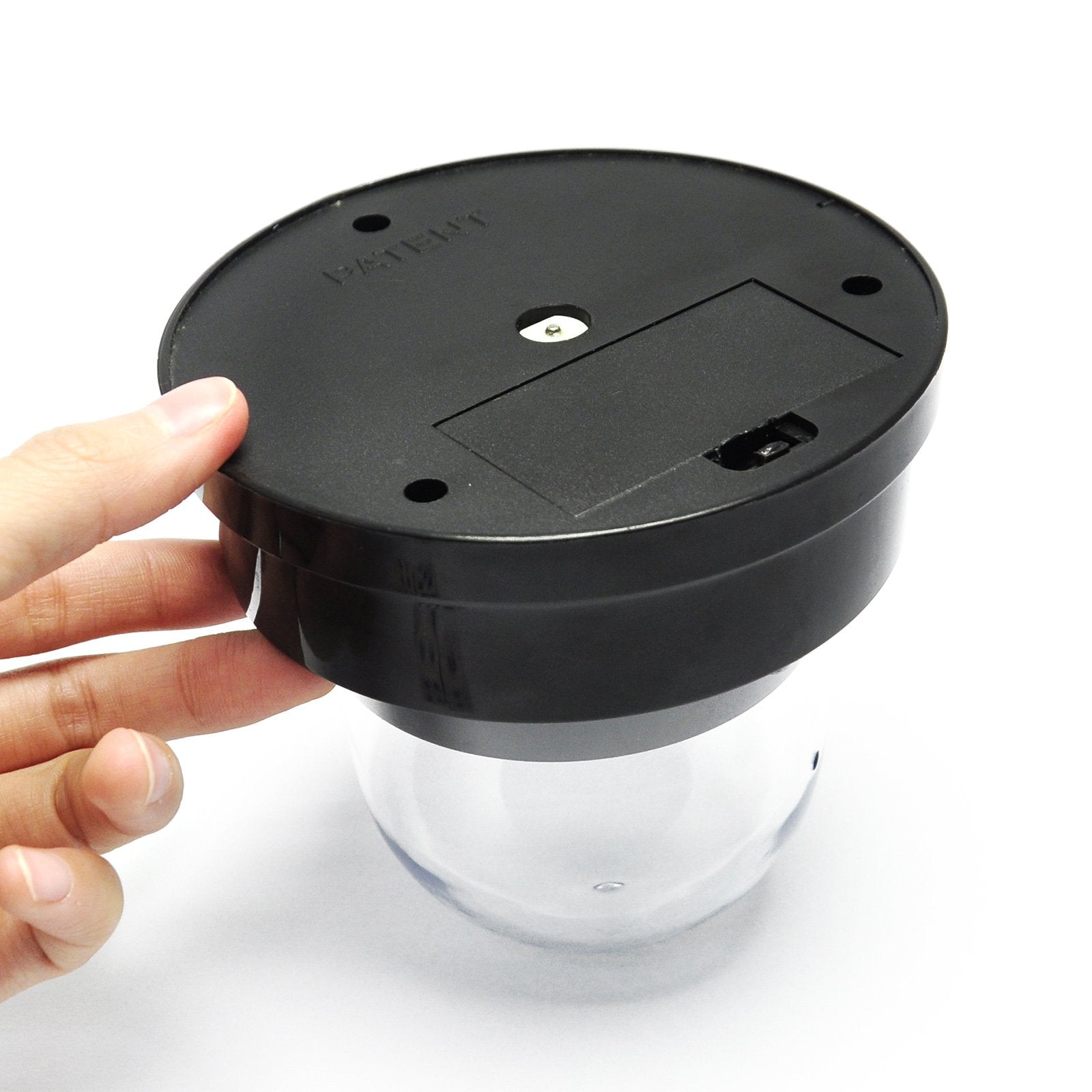 Lucky Dice Roller Cup Set with 5 Dices (battery not included). Push-button automatic rolling. Built on a black cover on the transparent cap ensures that your dices are not seen by the opponents. Dimension: 10.6(diameter of base) x H11.4cm Dice Roller is powered by 2 x AA batteries(not included)