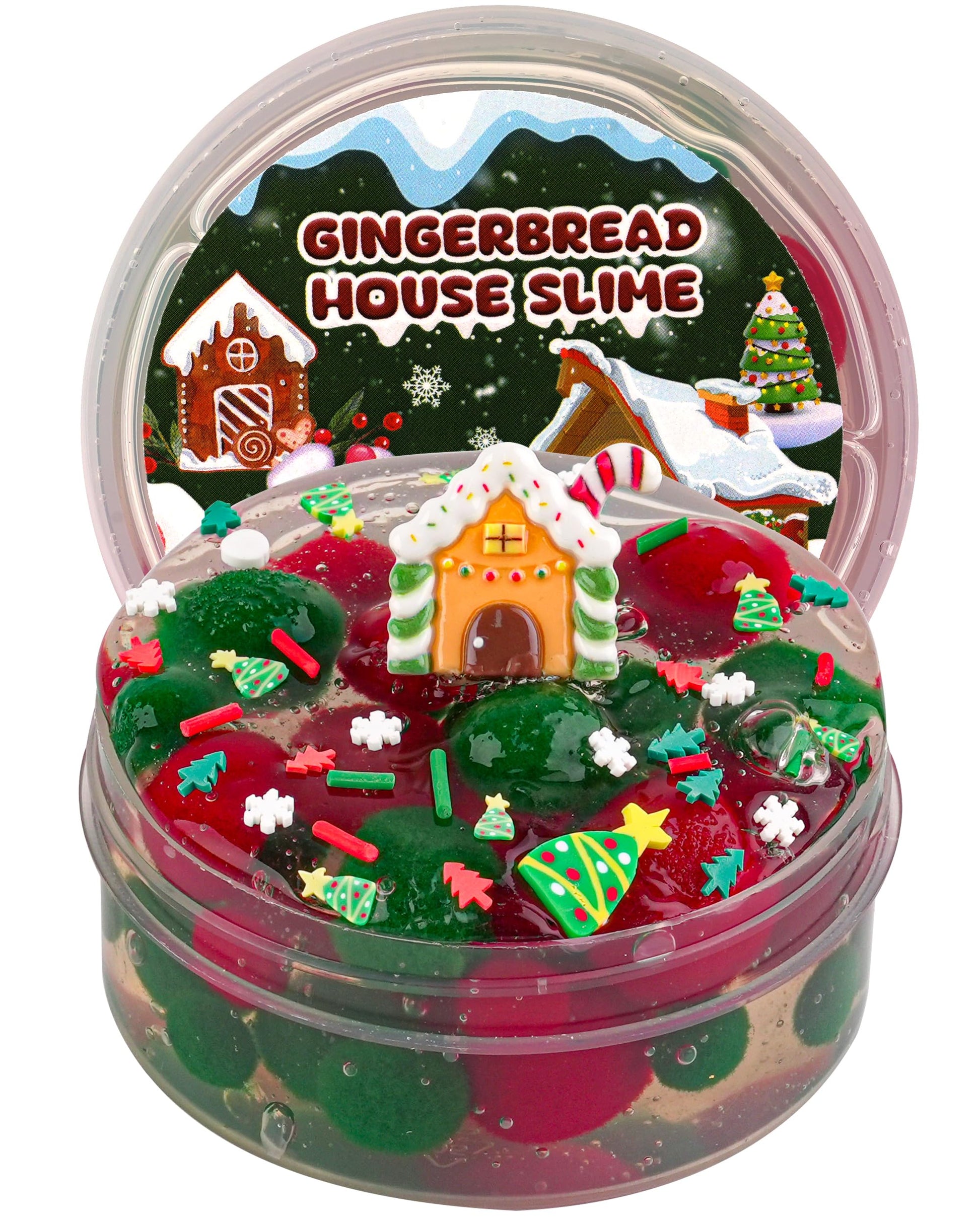 • Q: Is this slime safe for children? A: Yes, the Gingerbread House Green & Red Pom-Poms Clear Slime is made from high-quality ingredients and is safe for kids. However, adult supervision is recommended for children under 3 years old.