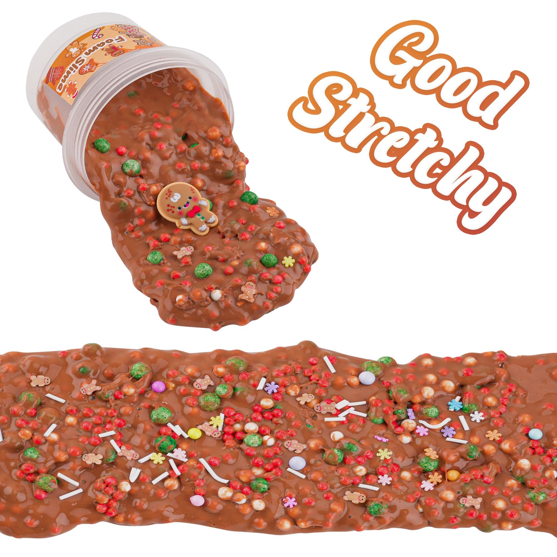 Gingerbread Man Brown Foam Slime - Christmas Stocking Stuffers For Kids, Good Stretchy & Non-Sticky Crunchy Slime Sensory Toys F