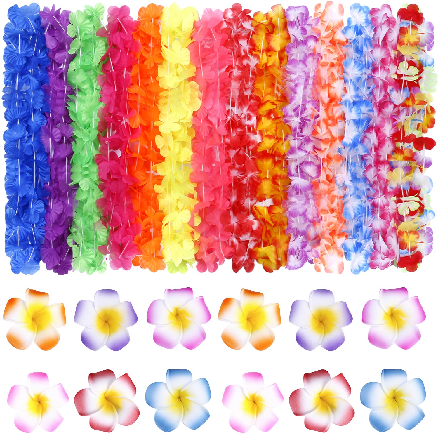 View compareGinmic Hawaiian Leis, Luau Party Favors,64Pcs Tropical Hawaiian Party Necklace,Hawaiian Plumeria Flower Hair Clip,Headbands And Wristbands, For Kids Or Adults Party Supplies, Summer Beach Vacation,