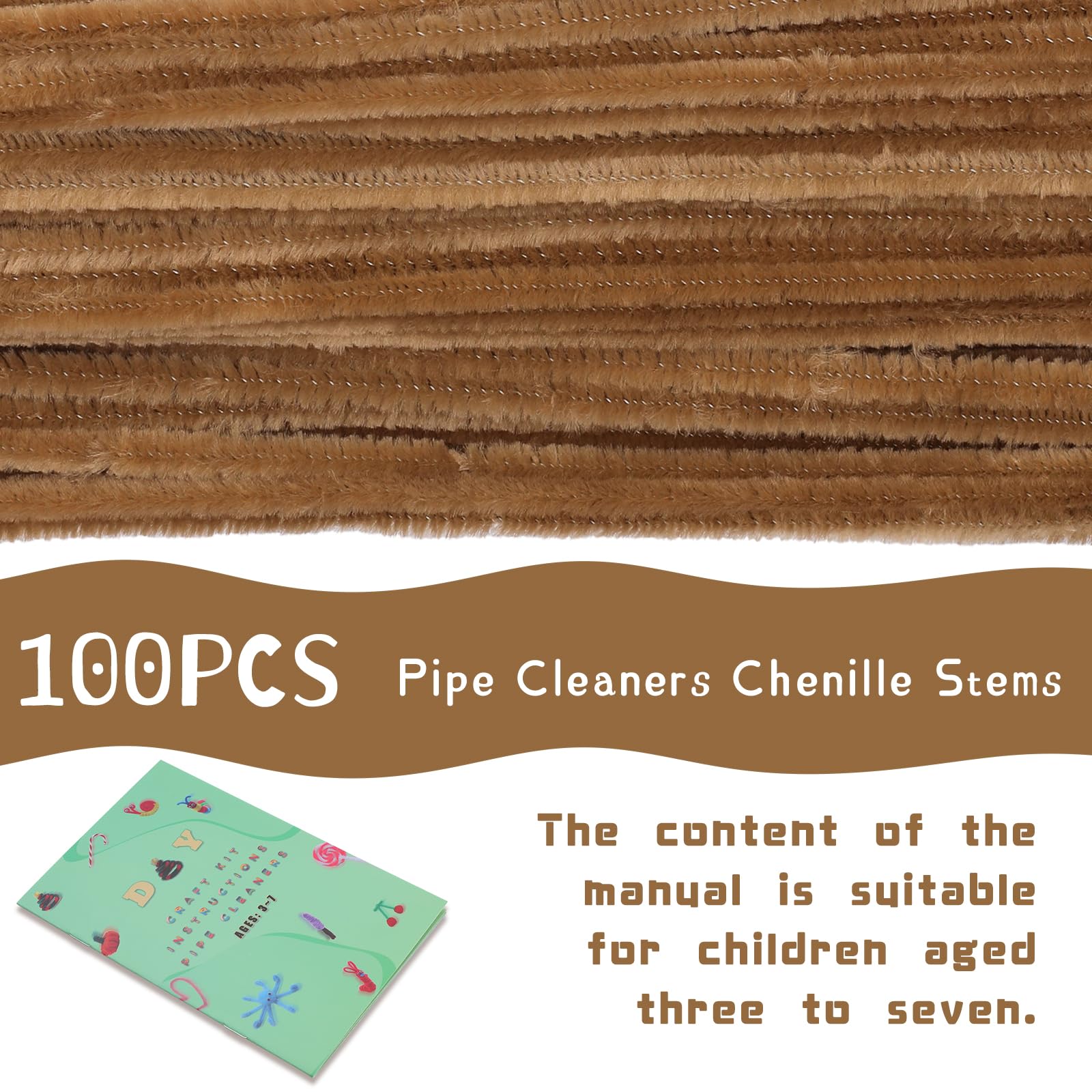 Giwrmu 100 Pieces Pipe Cleaners Chenille Stem, Light Brown Pipe Cleaners Craft, Fuzzy Sticks Craft Supplies, Colored Pipe Cleane