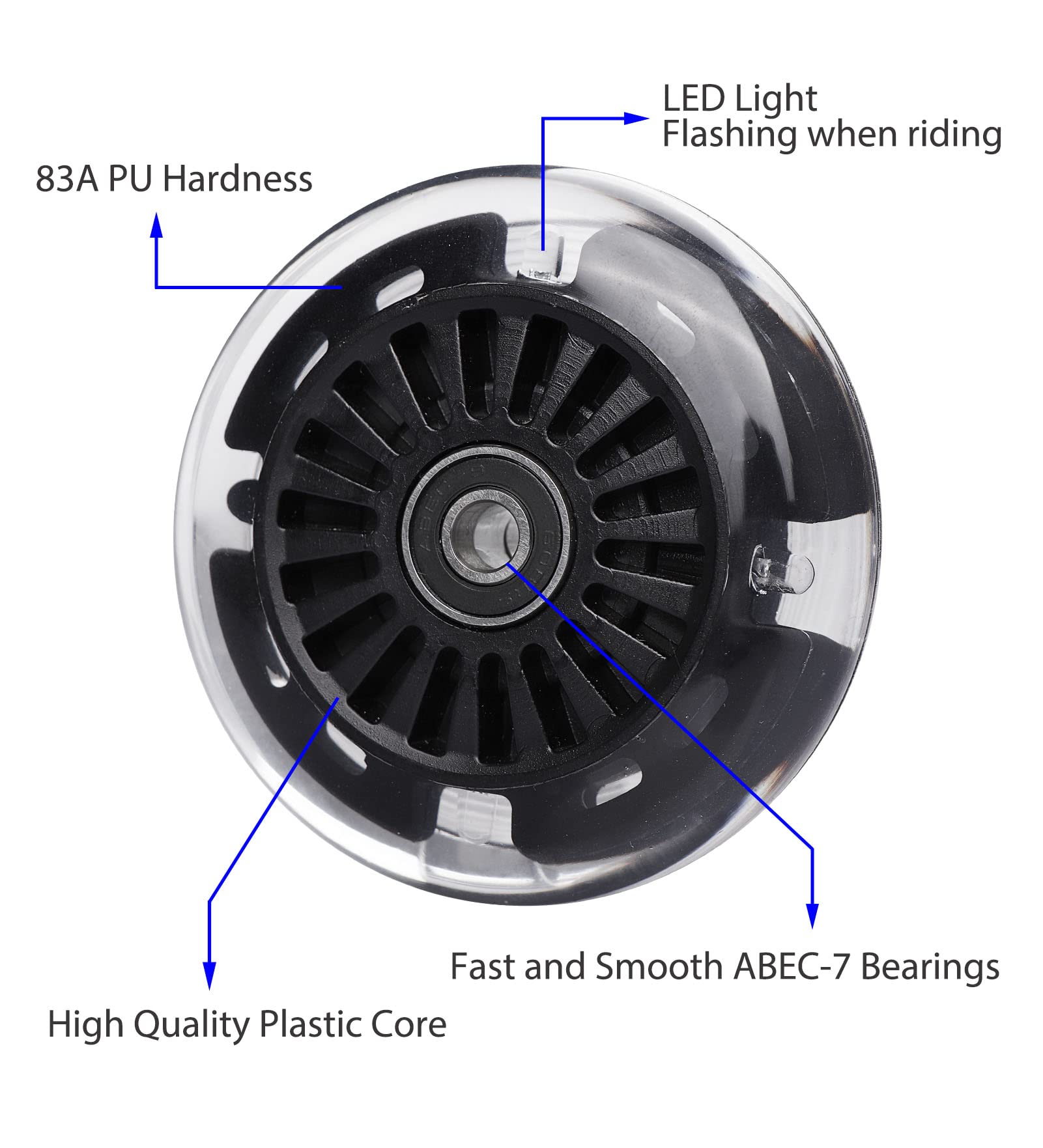 - Q: What are the benefits of using Gladeer 90mm polyurethane replacement wheels? A: The Gladeer 90mm polyurethane replacement wheels are made from high-quality 83A durometer polyurethane, which provides durability and a smooth ride. They are designed not to scratch wood floors, making them ideal for indoor use. Additionally, they come with pre-installed ABEC-7 bearings for improved speed and longevity.