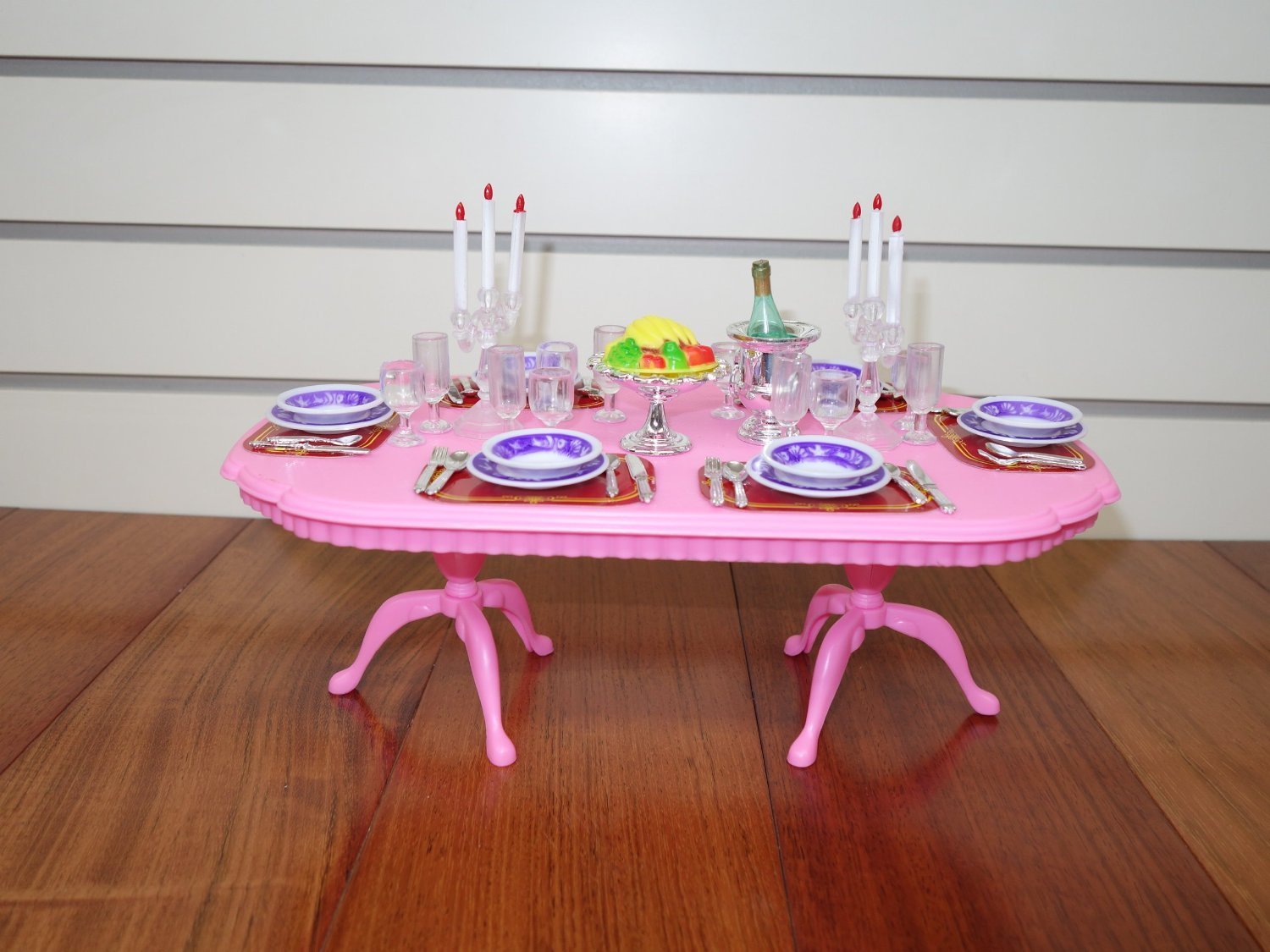 - Q: What accessories are included with the Gloria Dining Room Set? A: The set includes all accessories as shown in the pictures, but please note that dolls are not included.