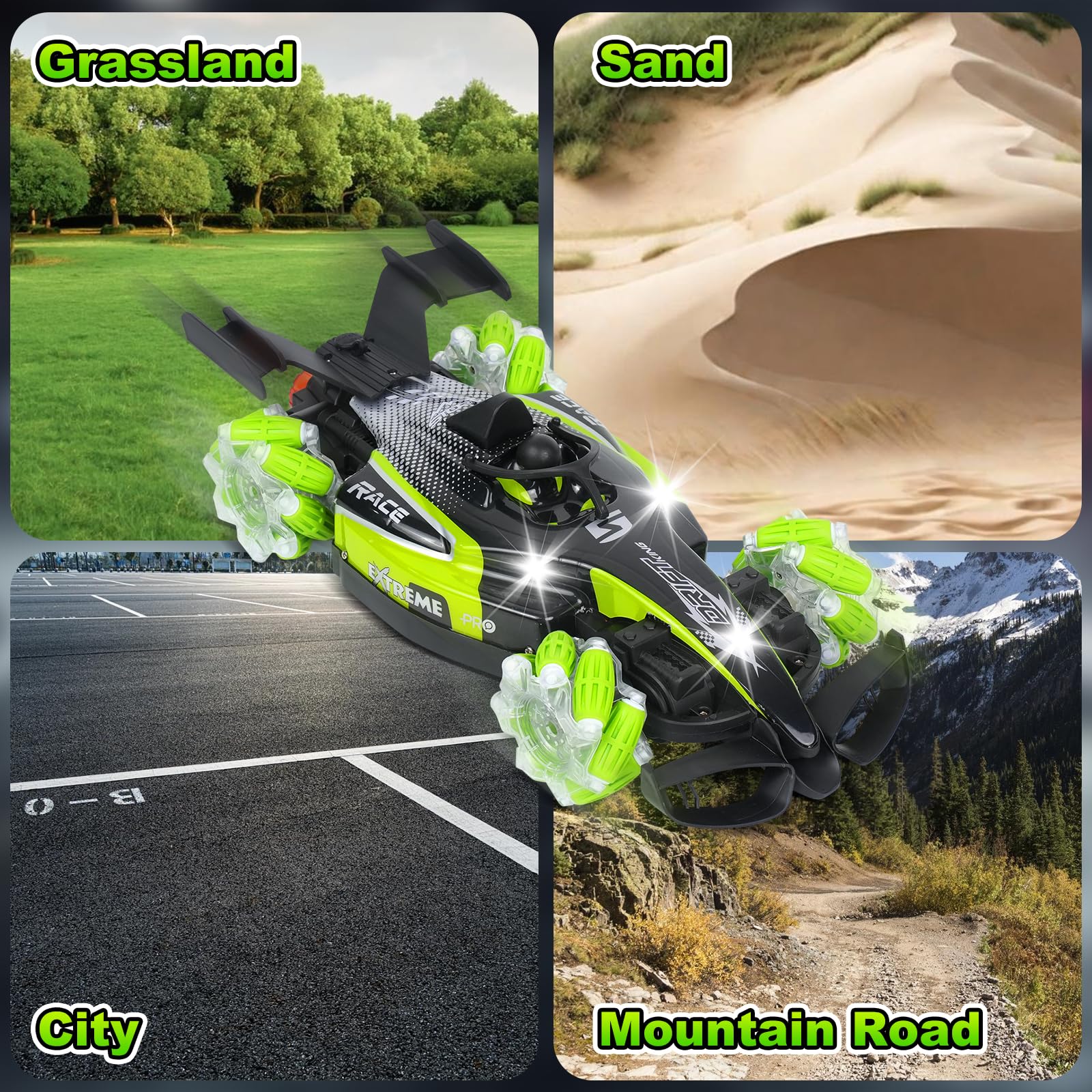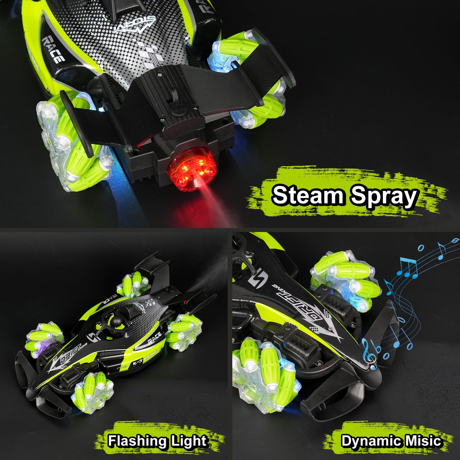 Introducing the Glouslove RC Car - the ultimate stunt car for kids aged 6-12!??? ??This versatile vehicle is packed with exciting features to deliver endless fun and thrill for young enthusiasts. The Glouslove RC Car takes remote control play to a whole new level, combining the sleek styling of an F1 car with dynamic stunt capabilities. ??With its impressive drifting skills, kids can easily perform all-around drifts, while the shockproof design ensures durability, allowing it to withstand bumps and crashes during adventurous play. But that's not all - the car also includes cool light and music effects, adding an extra layer of excitement to every ride. Plus, its spray feature brings a unique touch to playtime, making each moment even more memorable. ??Whether conquering rough terrain or cruising along smooth roads, the Glouslove RC Car offers an exciting and long-lasting play experience. Its the perfect gift for kids who love adventure, making it ideal for birthdays, holidays, or any special occasion. ??Get ready for endless fun and excitement with the Glouslove RC Car. Drift, stunt, and control your way through hours of thrilling play with this innovative RC car!