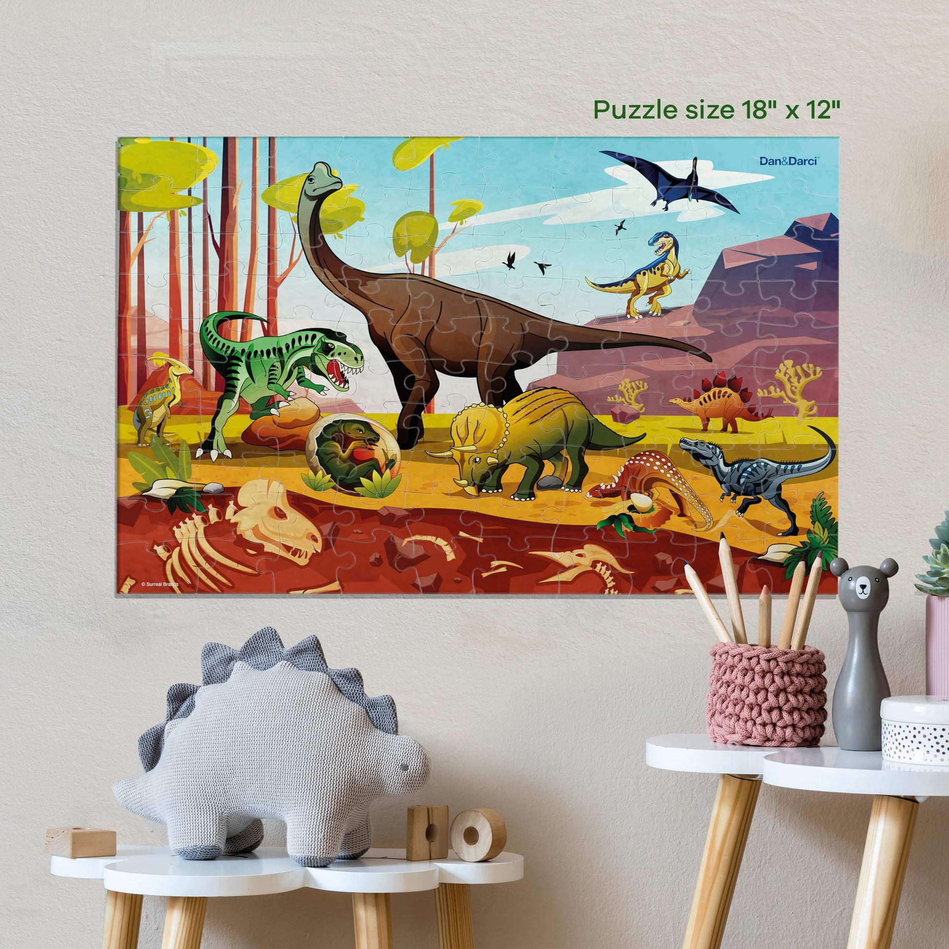 Glow In The Dark 100 Piece Dinosaur Puzzle For Kids - Dinosaurs Jigsaw Puzzles Toys For Boys & Girls Ages 6-8 - Christmas Birthday Gifts For Age 6 7 8 Year Old Toddler Boy Girl Gift - Dino Toy