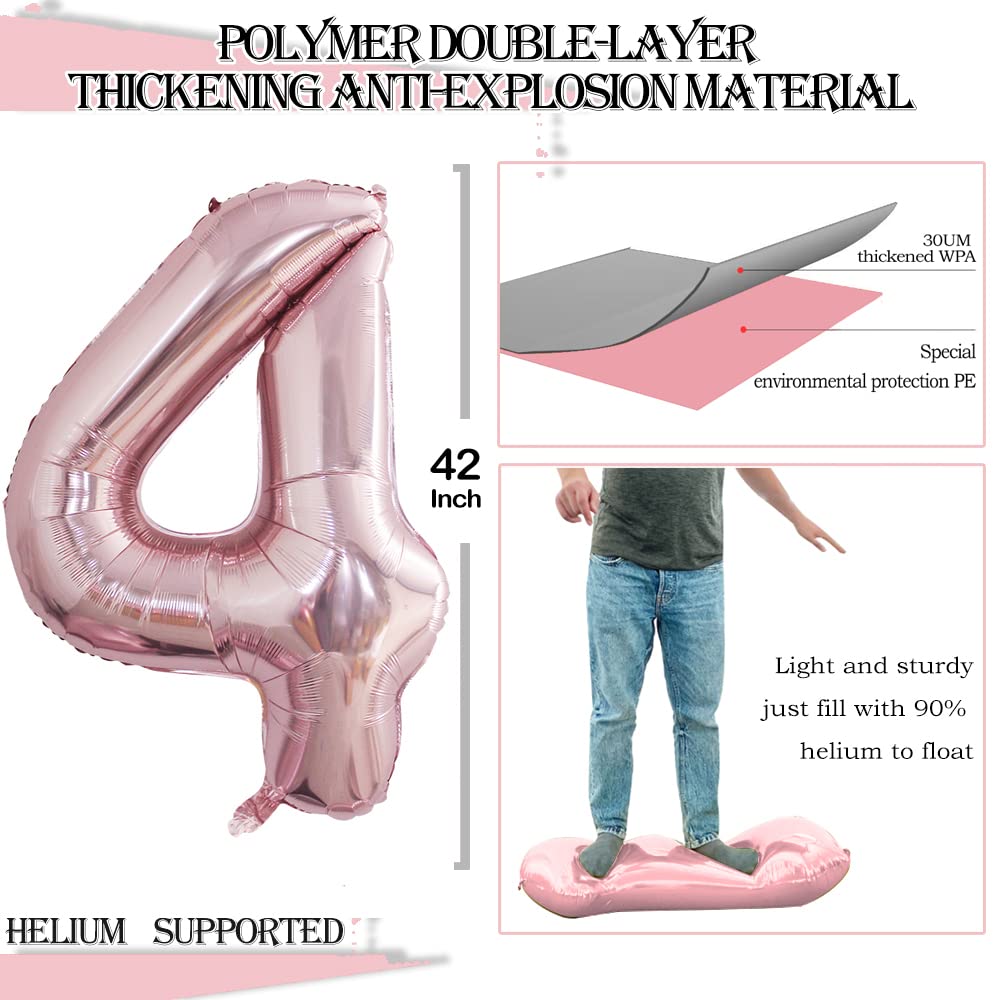 View compareGoer 2 Pcs 42 Inch Rose Gold Foil Balloons Number 4,Huge Number Balloons For 4Th 44Th Birthday Party Supplies Anniversary Decorations