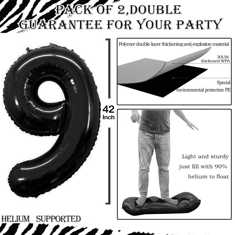 Goer Black Foil Balloons Number 9,Huge Number Balloons For 9Th 19Th 29Th 39Th 49Th Birthday Party Supplies Anniversary Decorations (3 Pcs,42 Inch,32 Inch,16Inch)