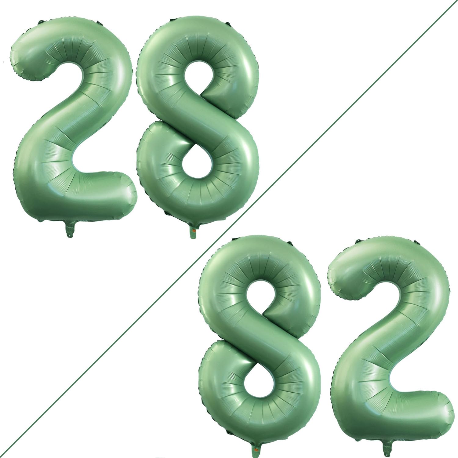 - Q: What colors are available for the GOER Number 28 balloons? A: The GOER Number 28 balloons are available in a beautiful sage green color, making them a perfect decoration choice for both 28th and 82nd birthday parties.